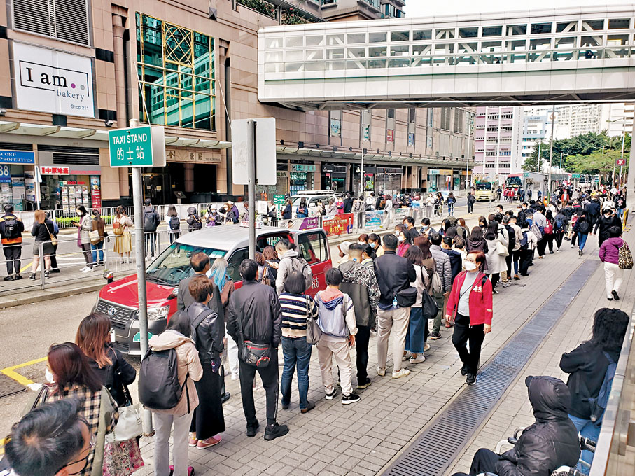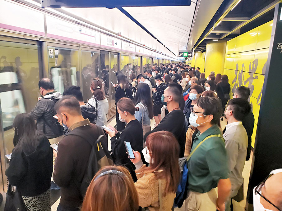 港鐵將軍澳線一列車昨日繁忙時段發生故障,導致調景嶺往來康城及寶琳站服務中斷近4小時,其間港鐵雖然安排免費接駁巴士疏導人潮,但路面交通大混亂,處處排長龍和大塞車,甚至有康城站市民徒步一小時行到調景嶺站,再接駁鐵路過海或出九龍。事件凸顯港鐵事後應變混亂,也把將軍澳交通規劃過於依賴鐵路系統的老、大、難問題表露無遺。