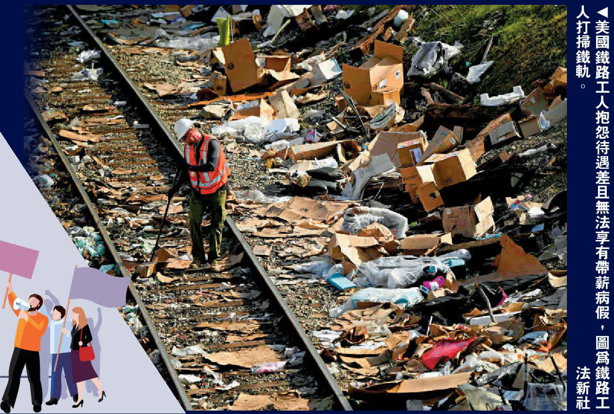 大公報綜合美聯社、路透社、BBC報道:美國11.5萬名鐵路工人原定於12月9日舉行大罷工,工人的主要訴求是享有帶薪病假。總統拜登無視工人休帶薪假的請求,於上周五簽署一項法案,強行阻止鐵路工人罷工。美媒指出,拜登自詡是支持鐵路行業和勞工權益的「工會喬」及「美鐵喬」,卻在這件事情上完全站在勞工的對立面,足見其虛偽本色。