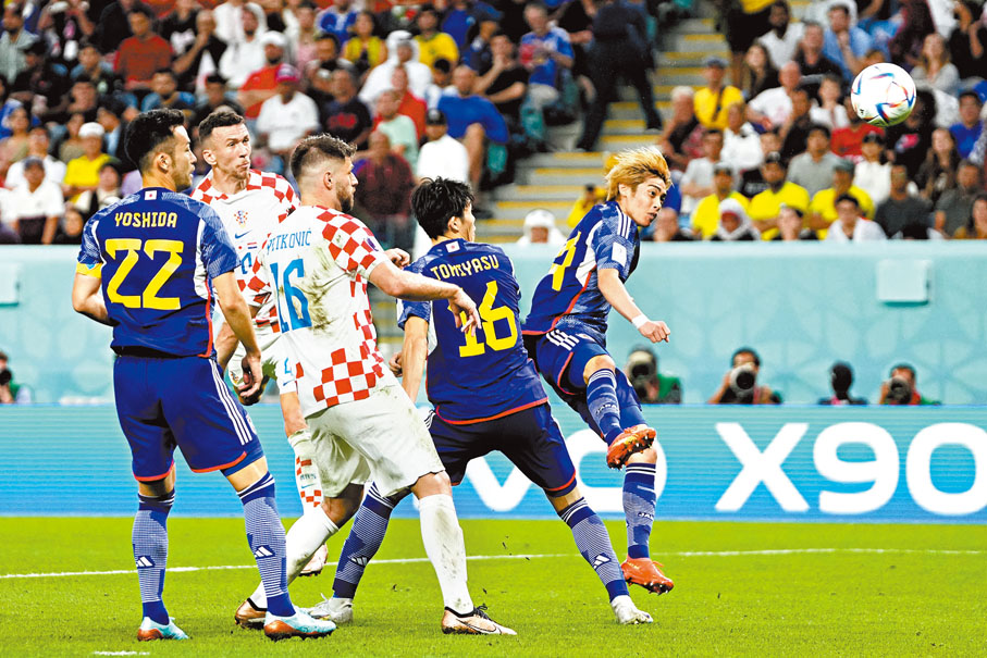 (香港文匯報記者 楊浩然)世界盃昨日繼續上演16強賽事,結果之前從未突破16強的日本隊未能創造歷史,球隊雖憑前田大然上半場建功領先,但上屆亞軍克羅地亞下半場由比列錫追平,令今屆首場比賽出現加時和互射12碼,最終克羅地亞互射12碼以3:1(總比數4:2)勝出,8強對手將為香港時間6日凌晨上演巴西對韓國的勝方。