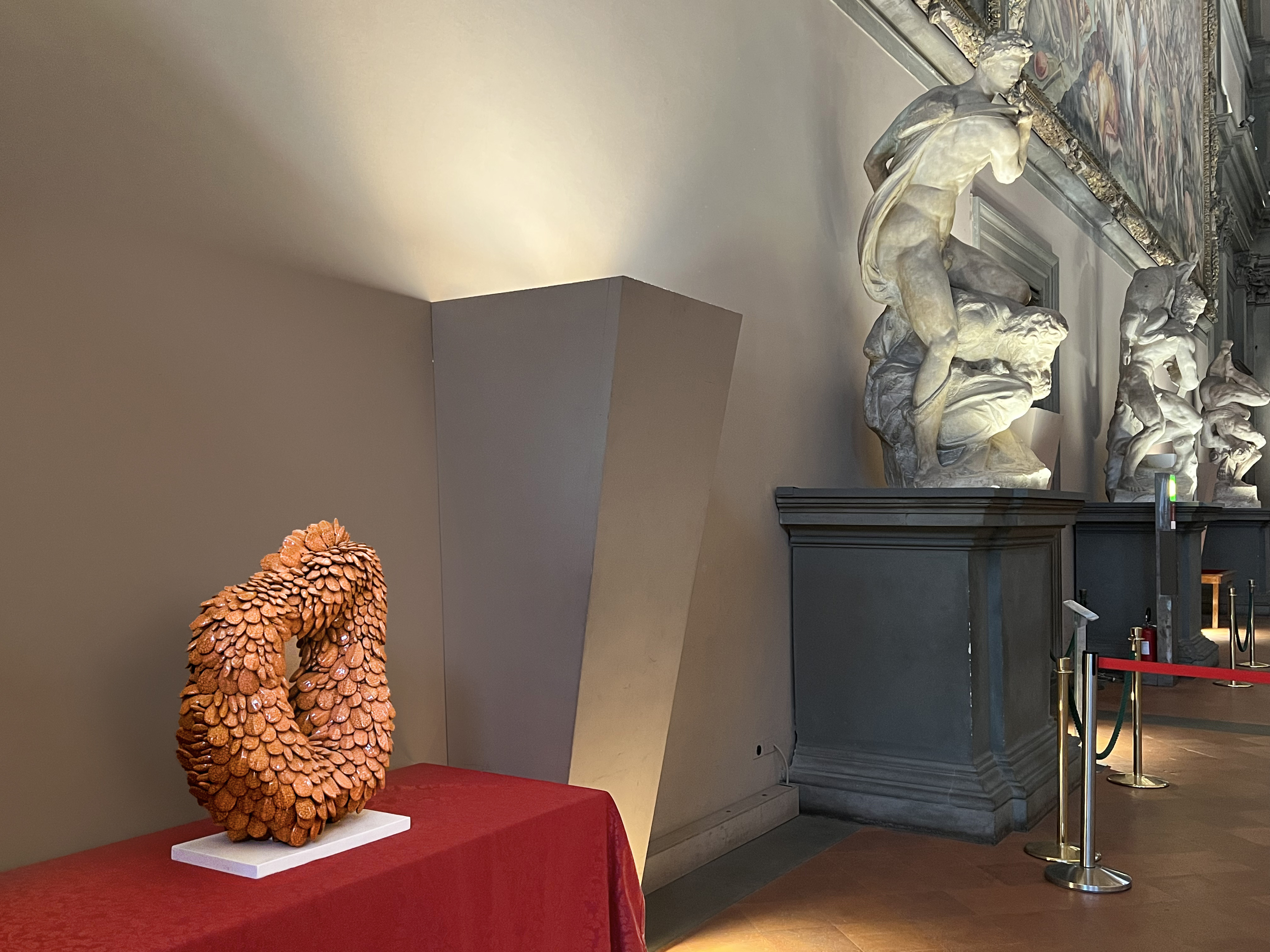 (大公文匯網記者江鑫嫻)中國藝術家在國際舞台再獲好評。經第39屆佛羅倫薩文學與藝術獎評審委員會的評審,中國藝術家郅敏憑藉作品《二十四節氣——立秋》榮獲雕塑類金獎,他也因此成為首位榮獲該獎項的中國藝術家。這一大獎的頒獎典禮於3日在歷史悠久的意大利佛羅倫薩舊宮五百人大廳舉行。獲獎作品被放置在佛羅倫薩舊宮米開朗琪羅等藝術大師的作品前展覽。郅敏在接受記者訪問時表示,今次獲獎不僅是一種個人榮譽,更代表着融合中華傳統文化的創新性藝術被國際社會更廣泛的接受。