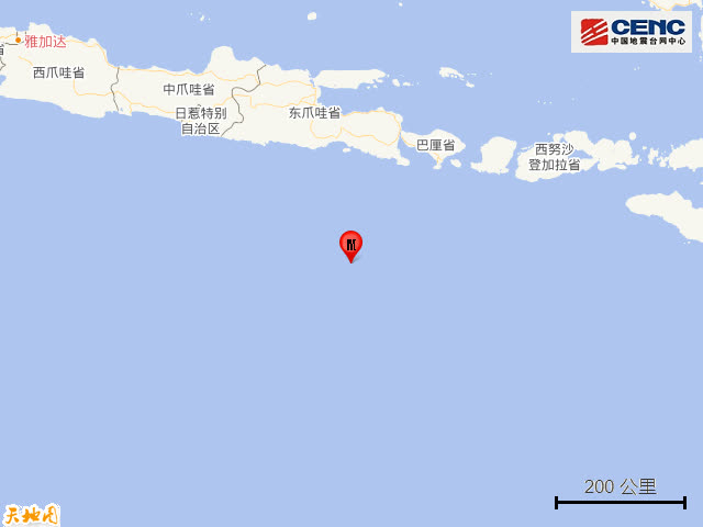 據印尼氣象、氣候和地球物理局網站消息,地震發生於雅加達時間13時07分(北京時間14時07分),震中位於東爪哇省任抹縣南部284公里處海域,震源深度為10公里。