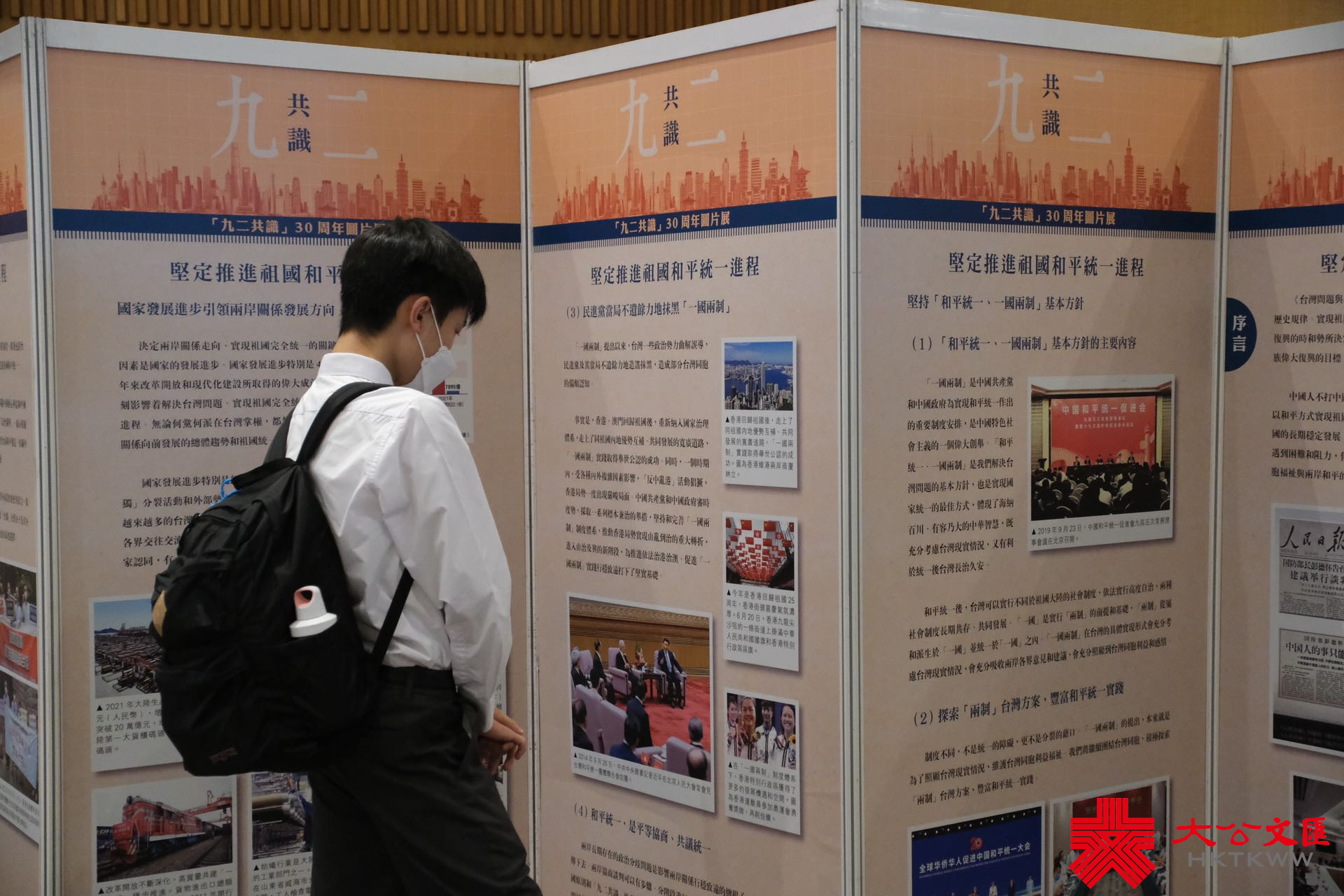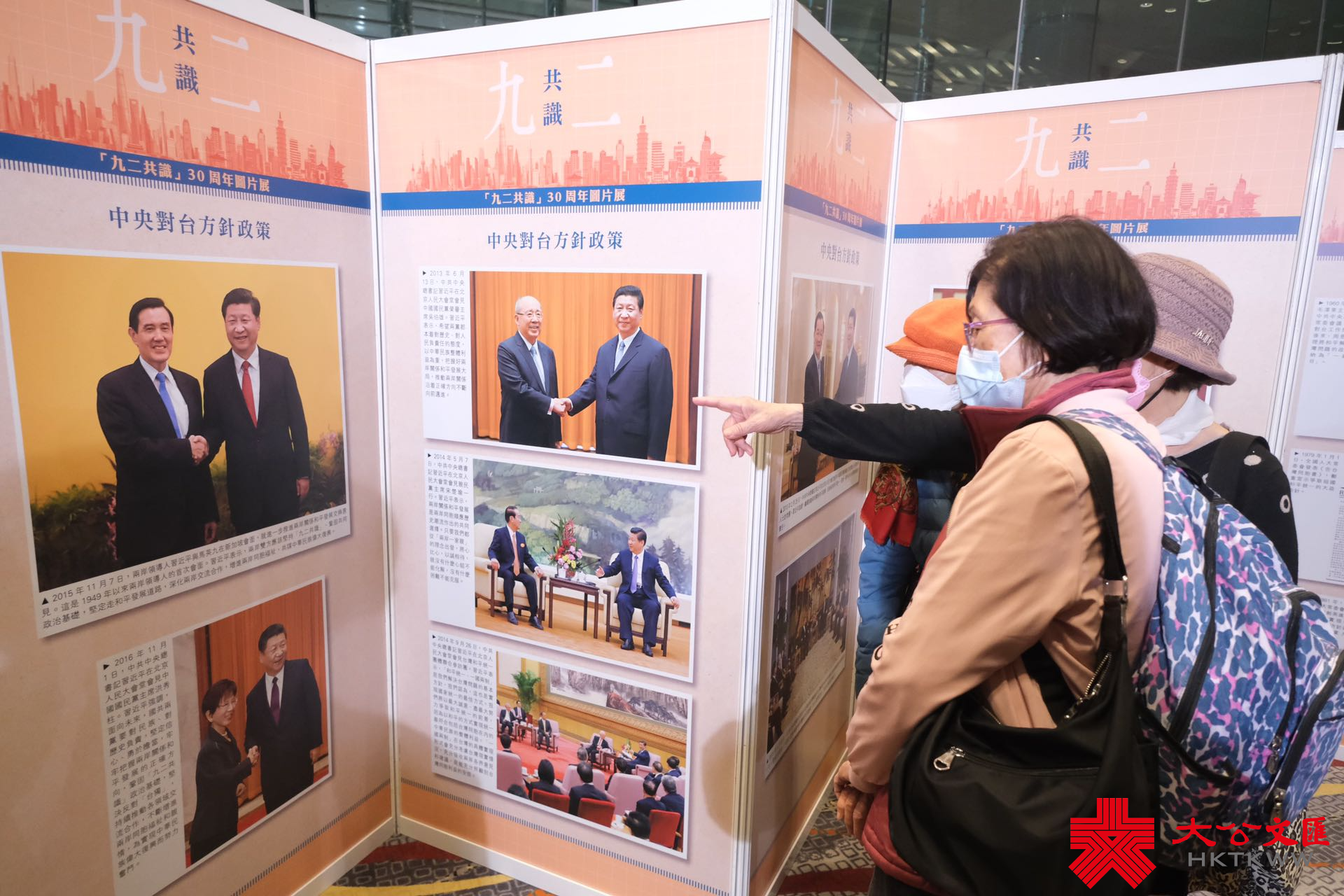 「九二共識」30周年圖片展分為五個部分:一、中央對台方針政策;二、「九二共識」為兩岸協商奠定政治基礎;三、汪辜會談及兩岸兩會協商歷程;四、推動兩岸關係和平發展、融合發展;五、堅定推進祖國和平統一進程。圖片展通過詳細的文字敘述和300多張珍貴圖片,生動再現兩岸關係和平發展歷程。主辦方希望通過展覽,讓香港市民和台灣同胞更多了解「九二共識」歷史事實及其對兩岸關係發展的重要作用。