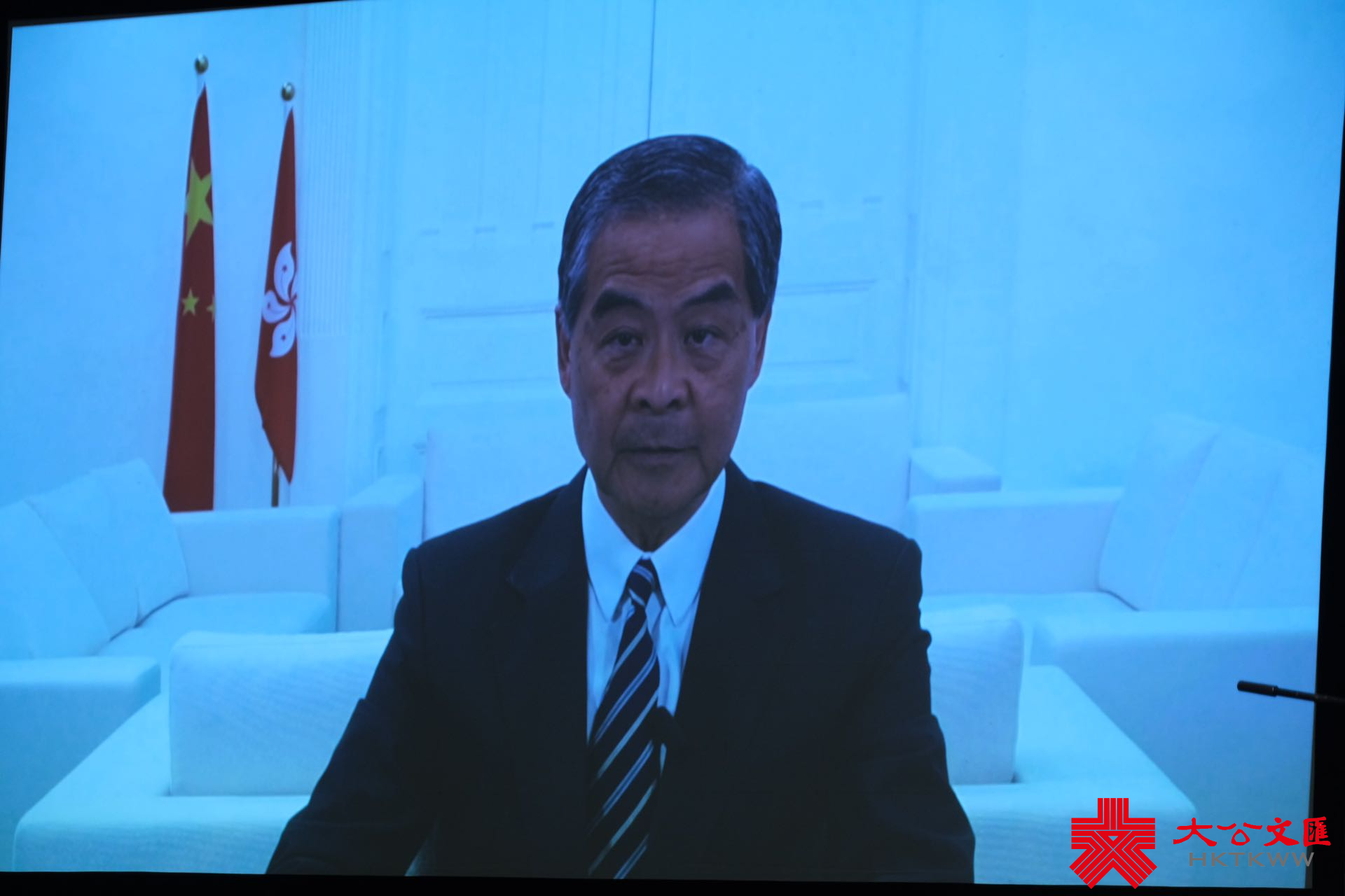 梁振英在視像致辭時表示,香港是達成「九二共識」的重要見證地,更是「一國兩制」的成功實踐者,「一國兩制」實踐和「九二共識」的達成,都是堅持一個中國、國家邁向完全統一的大事。