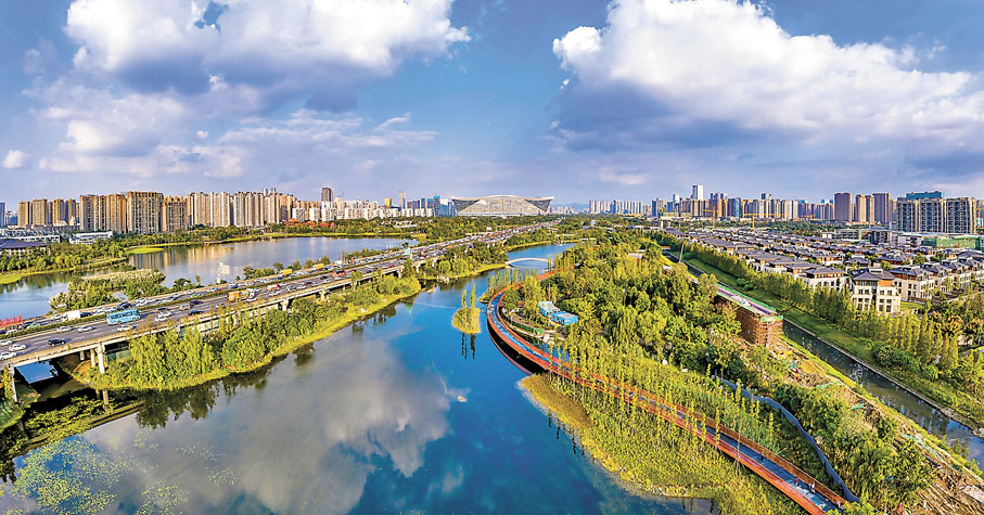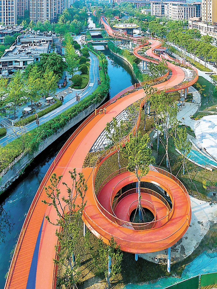 (香港文匯報 記者 李兵)一撥人在野外露營,一撥人在爬龍泉山看日出,還有一撥人在騎行繞城綠道;成都的共享單車沒有顏色之分,只有是否征服過繞城綠道的區別……今年4月,成都繞城綠道正式竣工投用,不少成都市民和外地遊客紛紛前往打卡,迅速走紅網絡。成都繞城綠道全長100公里,其中上坡20公里、下坡20公里、平路60公里,沿途78座風格各異的景觀橋串聯起121個特色生態公園。時而騎行在高速上方,時而飄移在湖面之上,時而從火車肚皮下鑽過,穿麥田、蹚花海、鑽蘆葦……記者進行了一次沉浸式騎行體驗,領略了這條網紅綠道的獨特魅力。