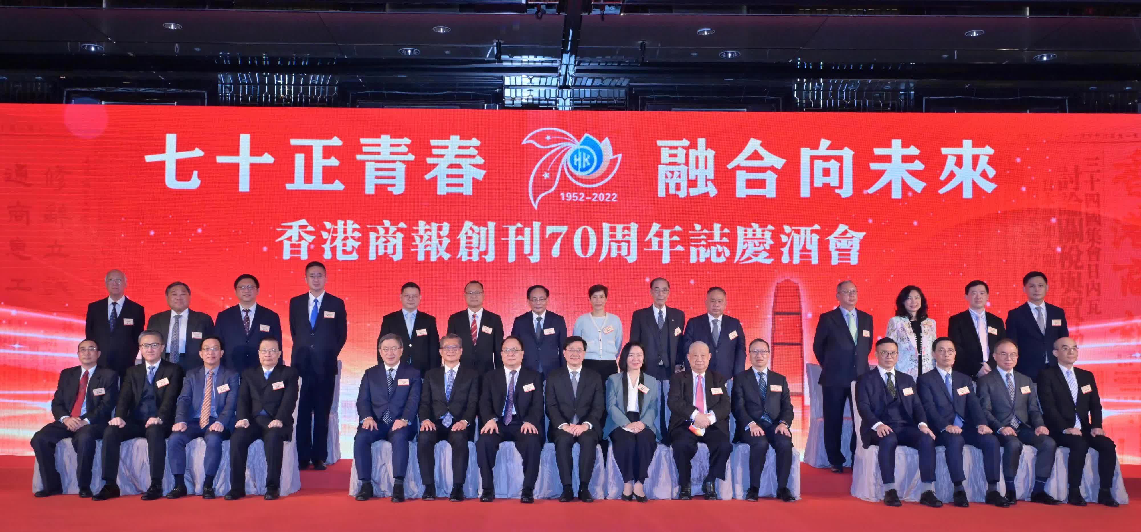 在香港商報七十周年報慶的大日子,香港特區行政長官李家超首先祝賀商報生日快樂,並祝願商報業務繼續蒸蒸日上。他說,七十年來,商報在促進香港的經濟繁榮和社會穩定上作出了重要貢獻。商報愛國愛港,以香港為家,以祖國為念,搭建橋樑,推動香港與內地及海外工商界的交流與合作,加強香港與內地的經貿往來,助力香港融入國家發展大局。