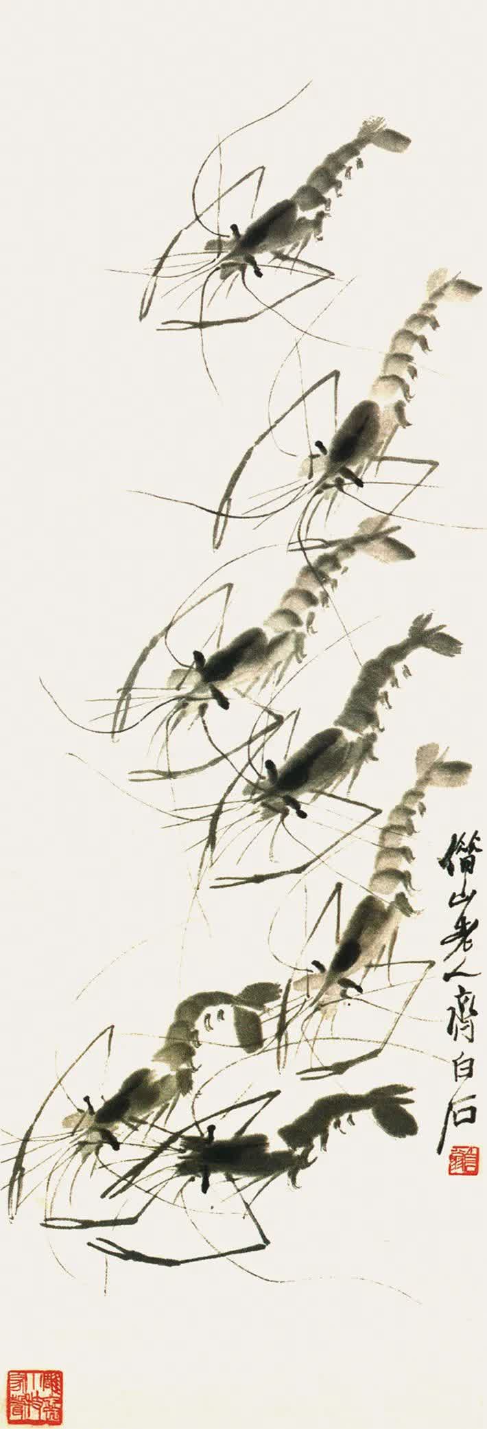 齊白石蝦圖軸
