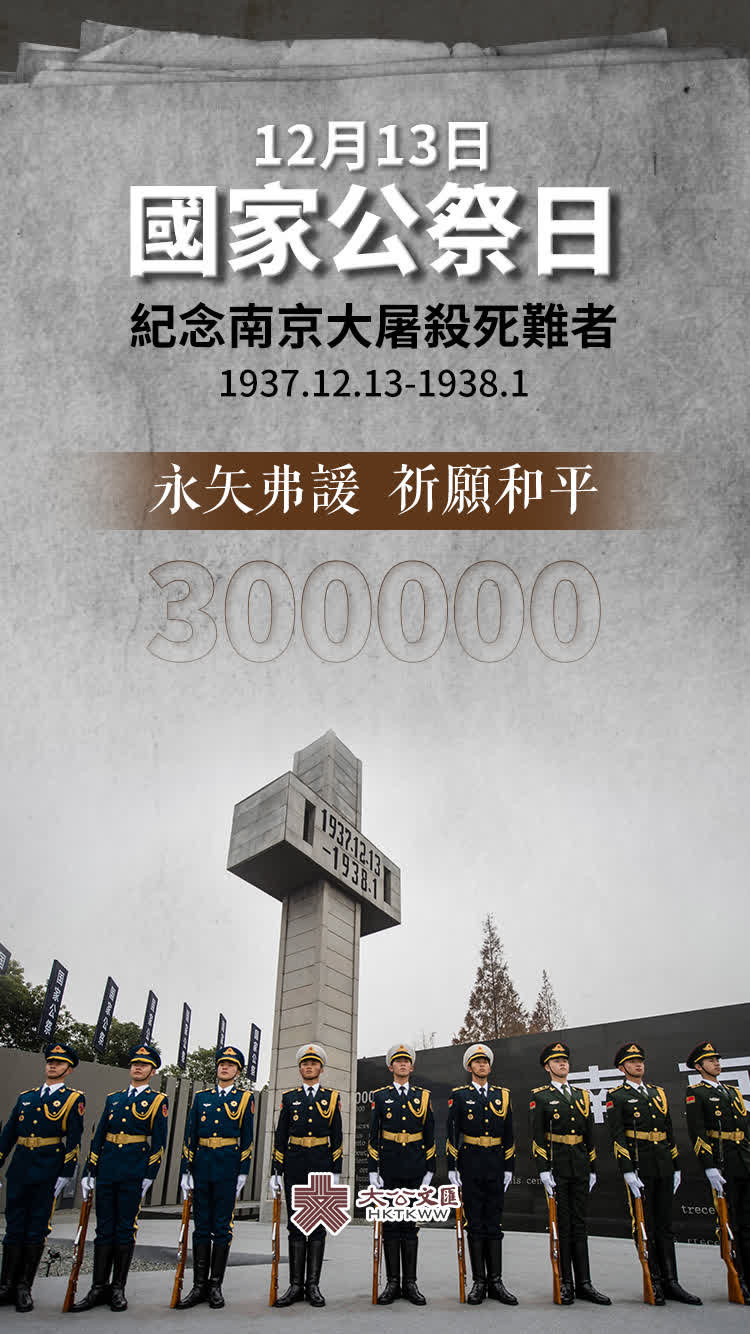 2022年12月13日是第九個南京大屠殺死難者國家公祭日。今日(13日)上午10時,我國將在侵華日軍南京大屠殺遇難同胞紀念館集會廣場舉行國家公祭儀式。