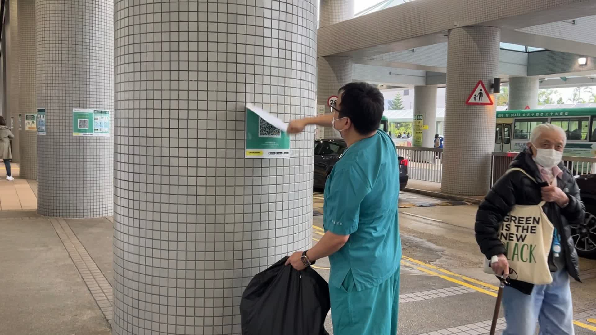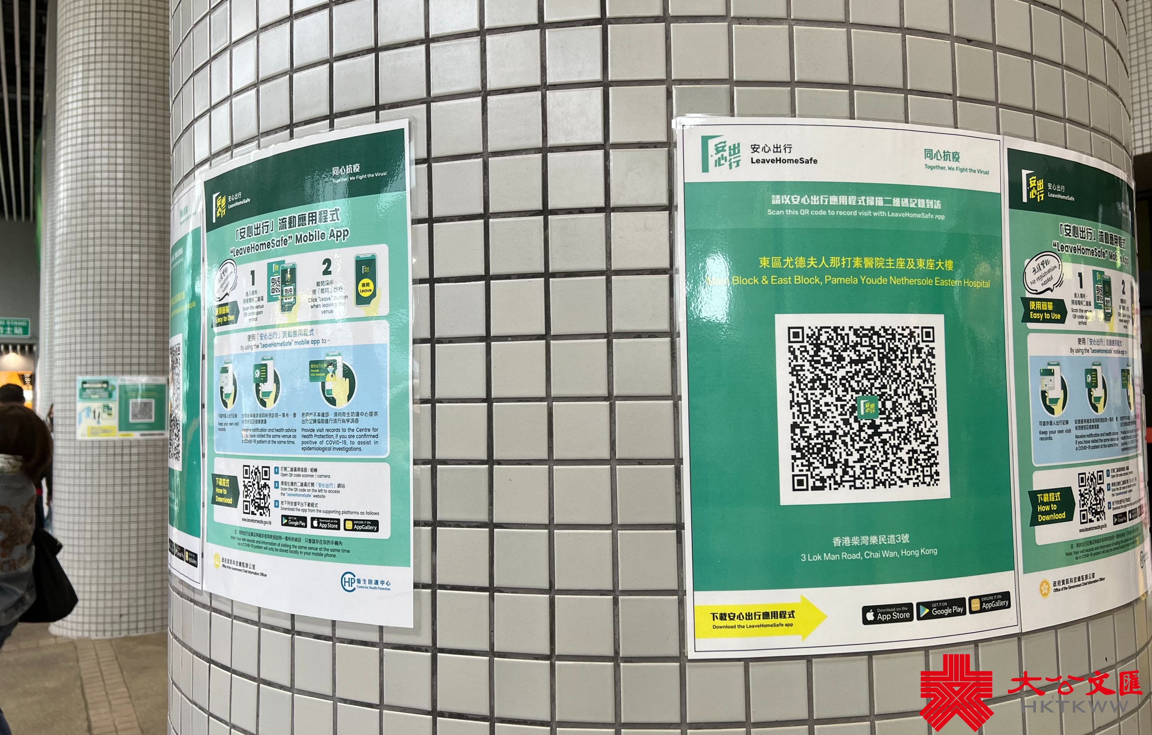 今日下午,大公文匯全媒體記者在東區醫院見到,有工作人員正在取下部分貼在醫院大樓外的「安心出行」二維碼,部分提示「請保持社交距離」的貼紙也被除下。有就診市民詢問新措何時實施,醫院工作人員表示將會於明天開始實施。