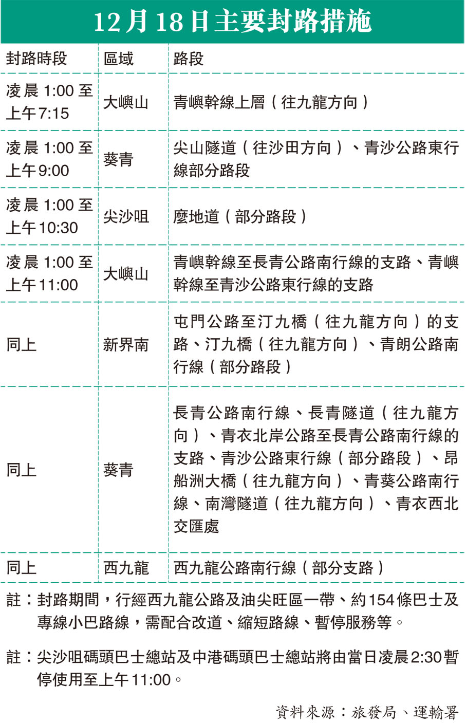 為配合單車節賽程安排,警方將於當日凌晨1時起分階段封路,各主要路段將於當日上午11時或之前解封,其他路段最遲於當日下午約3時30分解封,往機場方向的青馬大橋上層和下層來往機場及市區方向,則不受影響。約154條巴士及小巴路線將受影響,進行改道、縮短路線、暫停服務或臨時遷站措施等。
