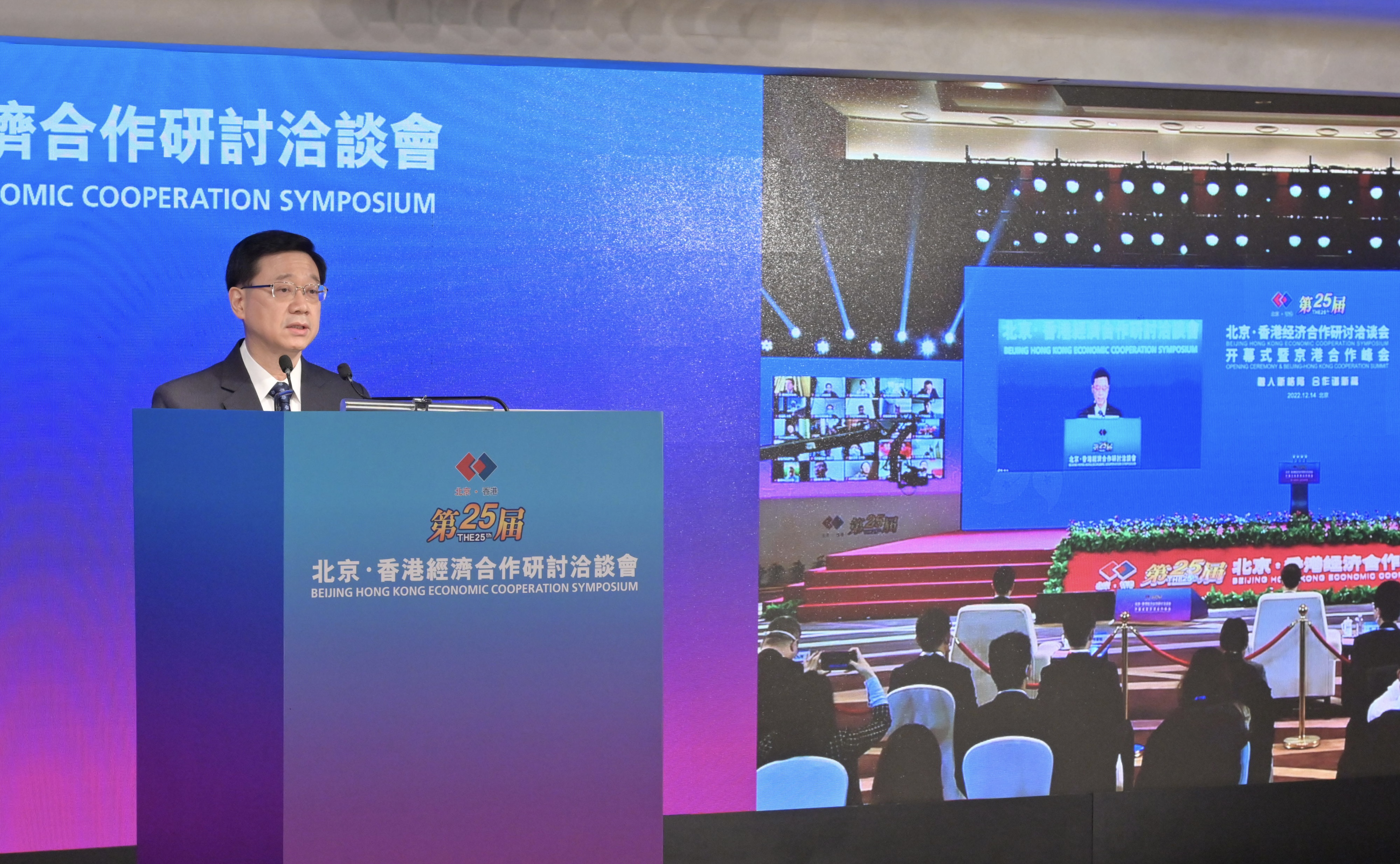 大公文匯全媒體報道,第25屆京港經濟合作研討洽談會今日(14日)開幕。行政長官李家超致辭時表示,中共二十大報告中提出,以中國式現代化全面推進中華民族偉大復興,並系統闡述了「一國兩制」的新理念、新思想,支持香港發展經濟、改善民生、破解經濟社會發展中的深層次矛盾和問題。