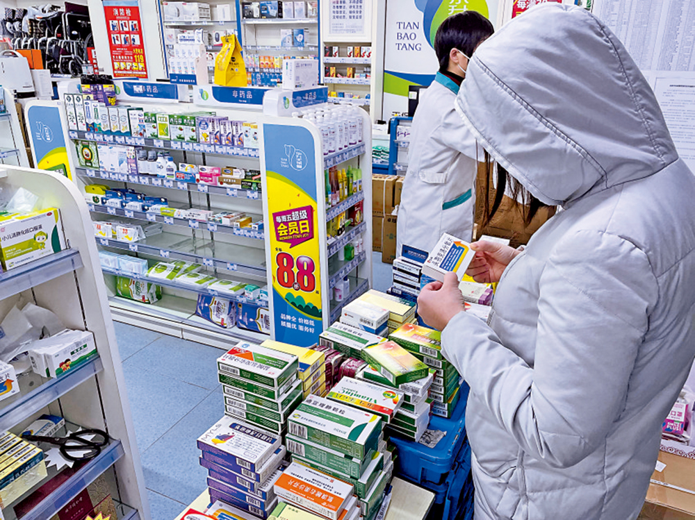 (大公報記者郭瀚林北京報道)內地防疫政策「新十條」落地已一周,14日記者實地探訪了北京多家藥店,發現群眾排起長隊購藥的情況已經緩解,藥店退燒、感冒藥物斷貨現象也大幅減少,只有連花清瘟等藥品依然緊俏。為滿足市民的用藥需求,北京市多家藥店增加了備貨量,並優先向開設在居民社區等人流密集處的店面供貨。