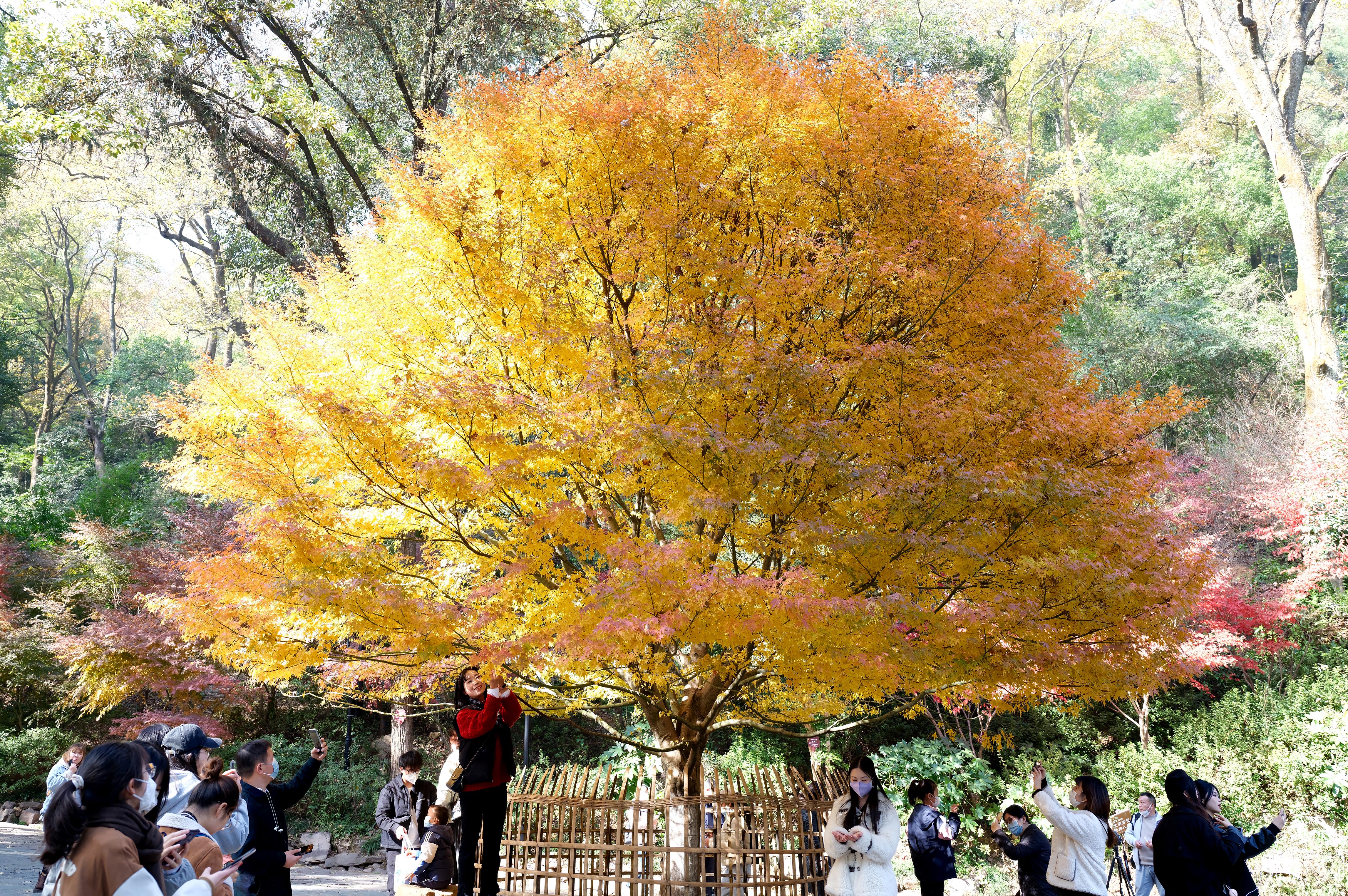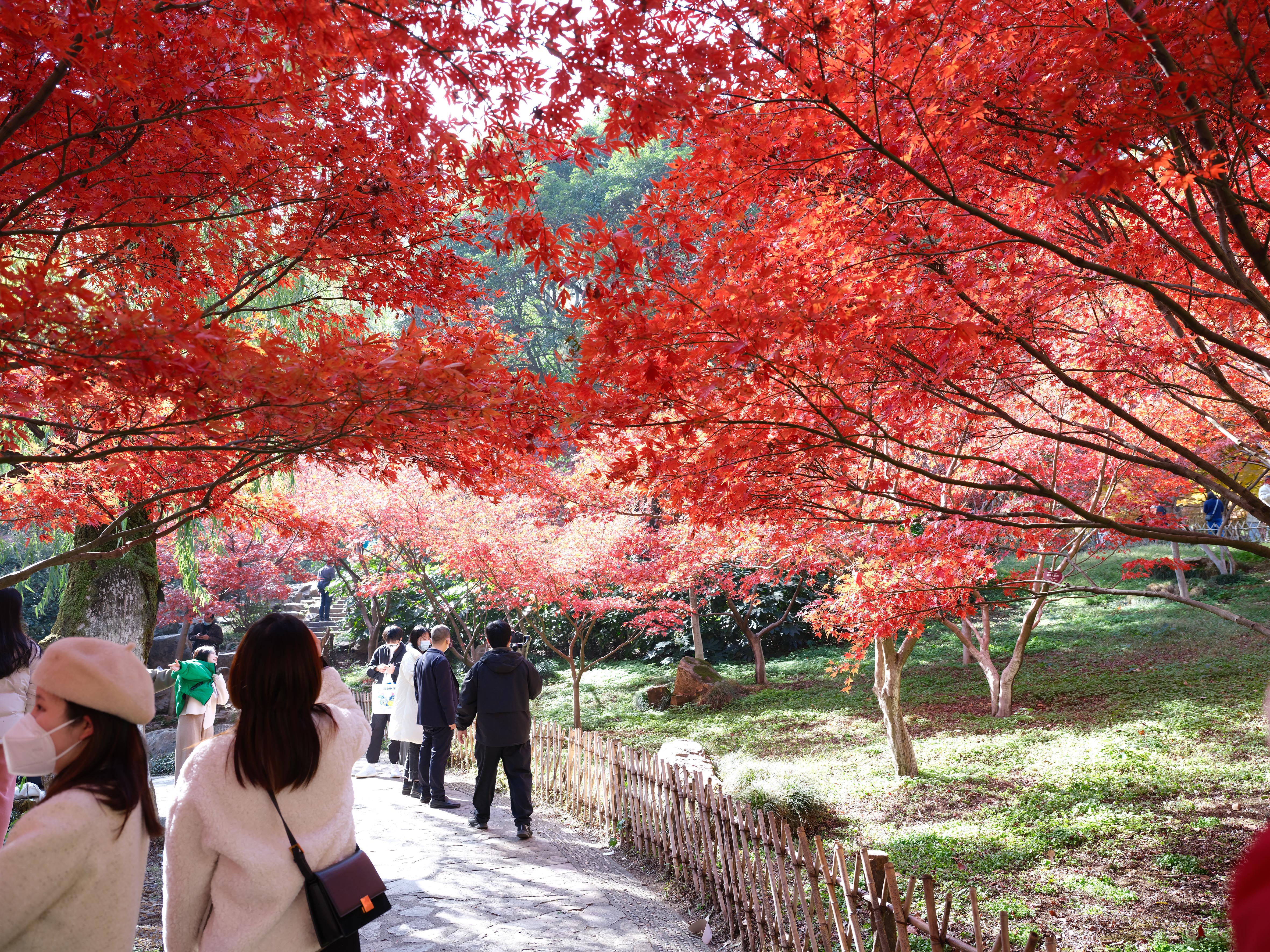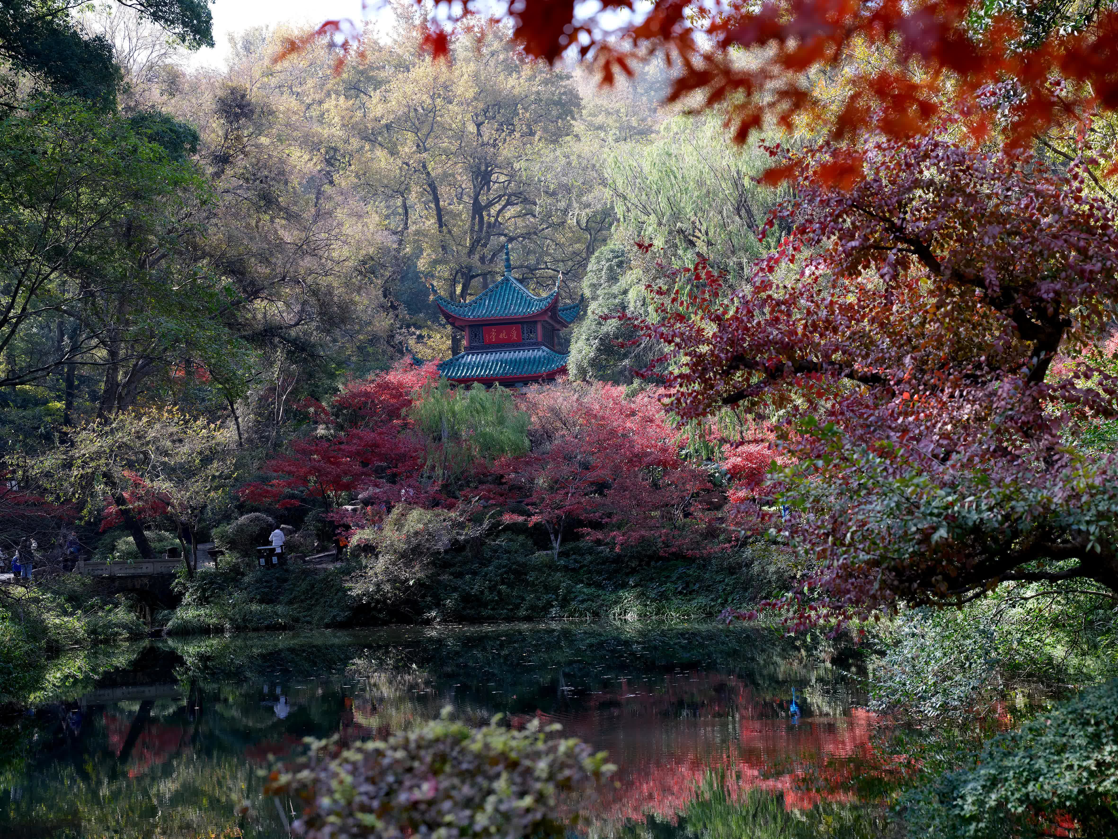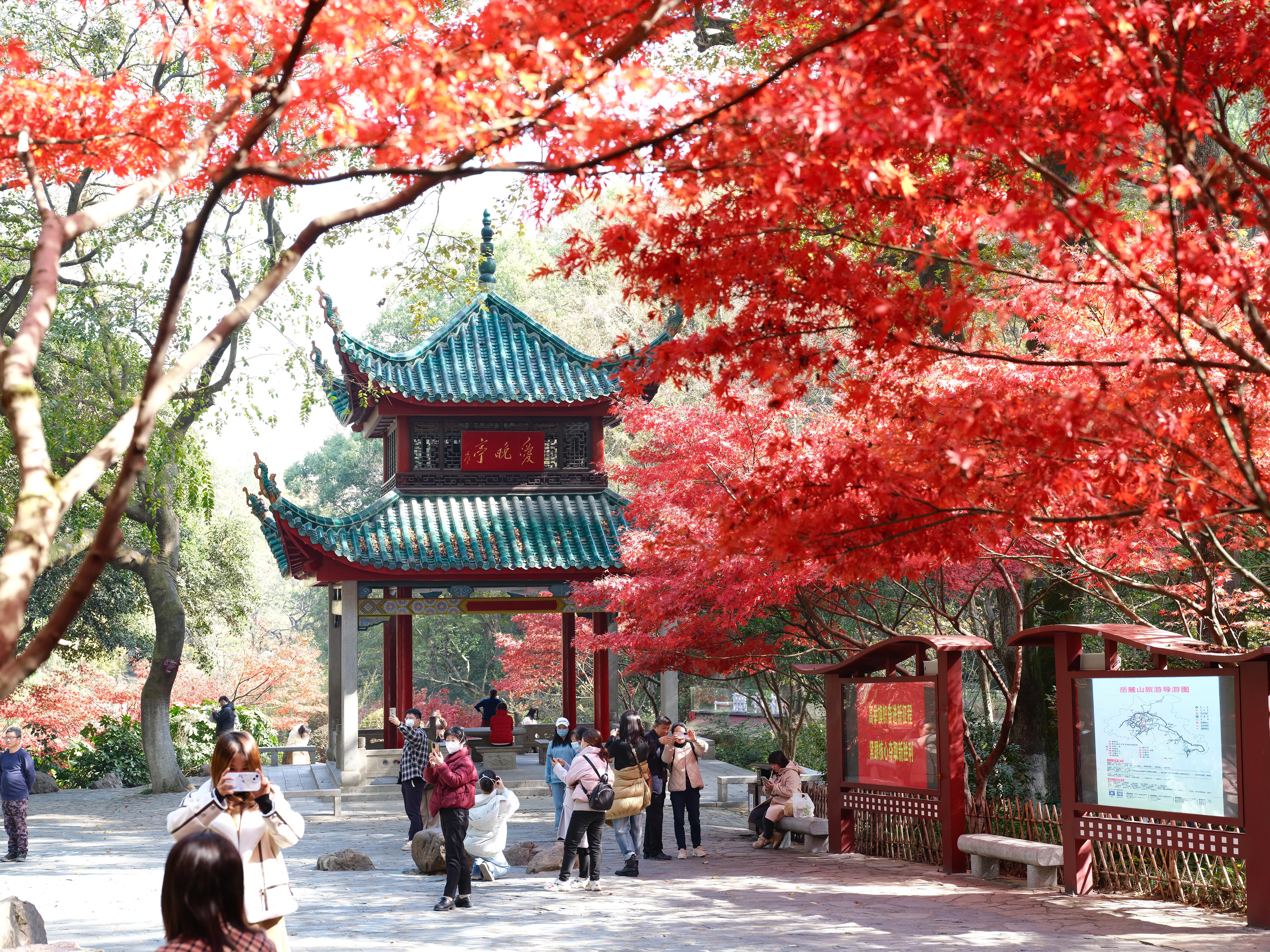 嶽麓山上的楓葉品種眾多,有楓香、雞爪槭、日本紅楓、秋火焰、十月紅、挪威槭、夕陽紅、秋焰、元頁槭等品種。11月中下旬至12月中旬,是長沙嶽麓山賞紅葉的最佳時節。今年由於前期氣溫較高,近期才進入最佳賞楓期。