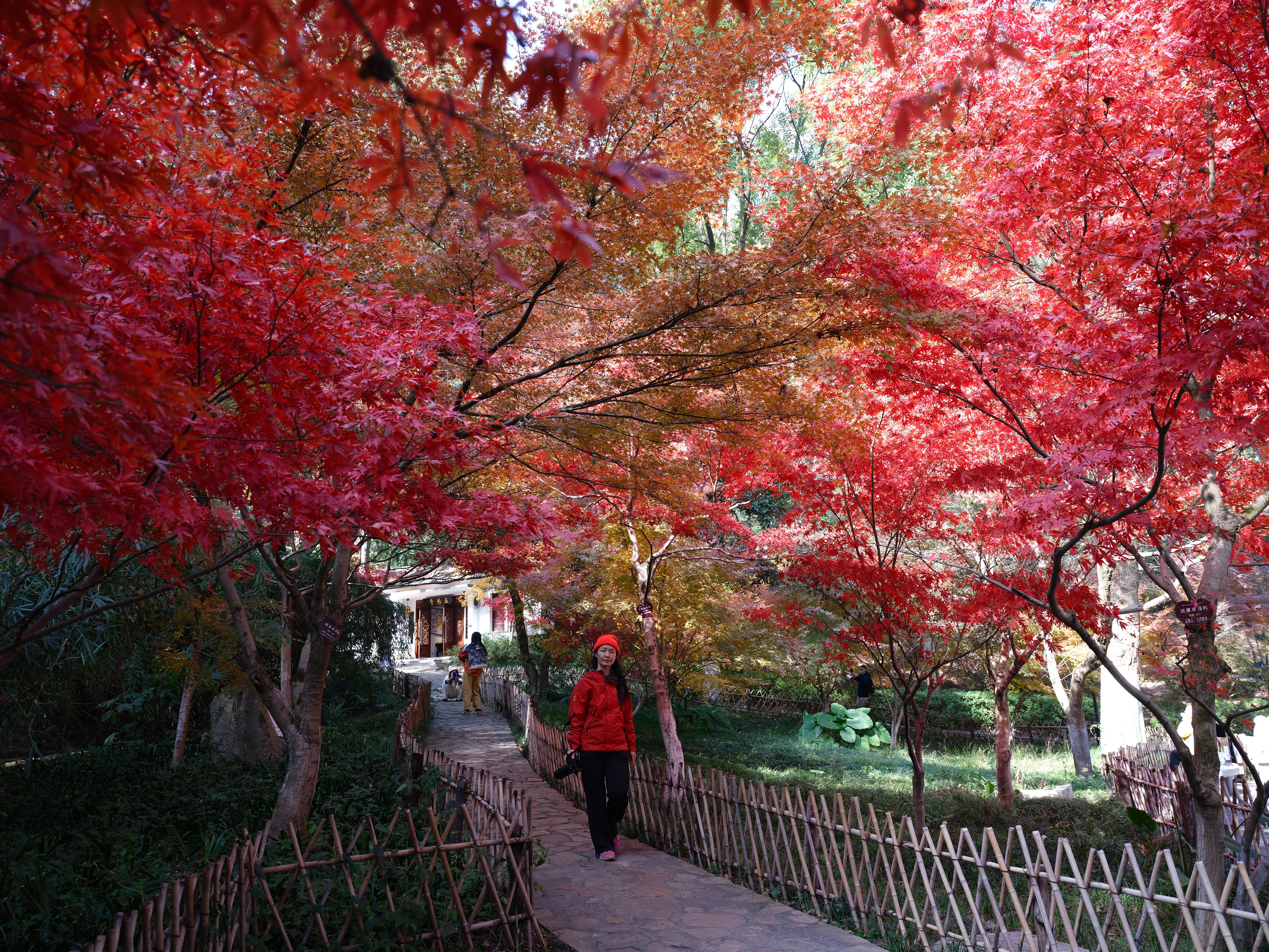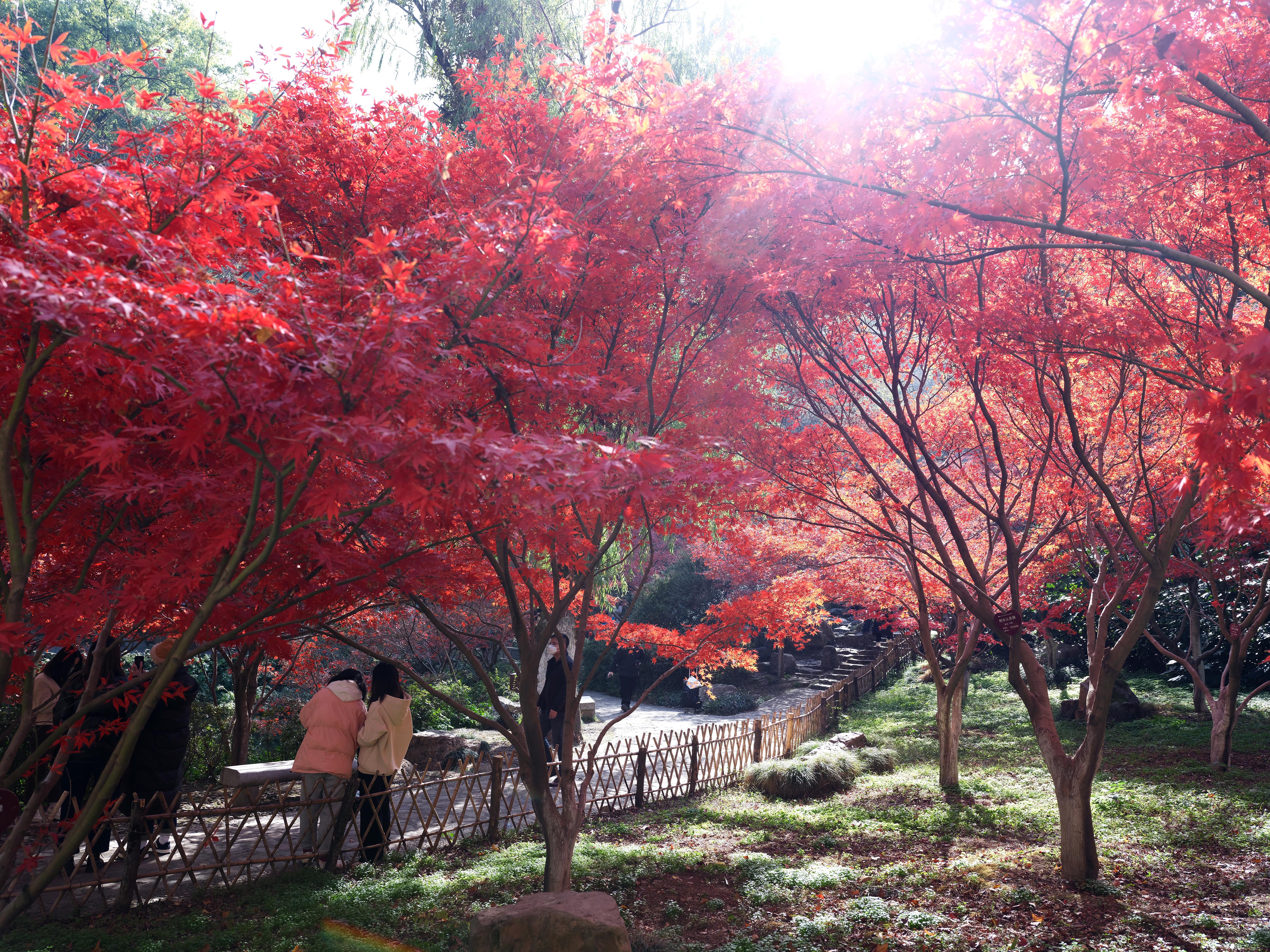 (大公文匯網 記者 姚進)12月的長沙,暖陽高照。作為全國四大賞楓勝地之一,嶽麓山漫山楓葉進入最佳觀景期。14日,記者來到嶽麓山景區,只見愛晚亭旁楓葉連林、紅似烈焰,吸引了許多長沙市民和全國各地遊客慕名前來打卡,欣賞「霜葉紅於二月花」的美景。