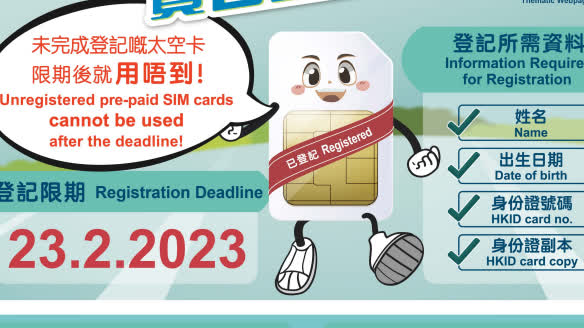 大公文匯全媒體報道,特區政府今日(16日)表示,所有於明年2月23日限期前未完成實名登記的電話儲值卡(俗稱「太空卡」)在限期後將不能繼續使用,尚未完成實名登記的用戶應盡快登記,並呼籲市民提醒及協助身邊正使用「太空卡」的親友(尤其是長者)在限期前完成實名登記,以免其電話服務受影響。