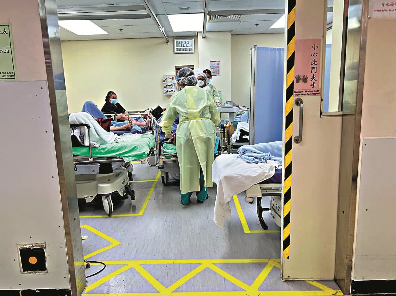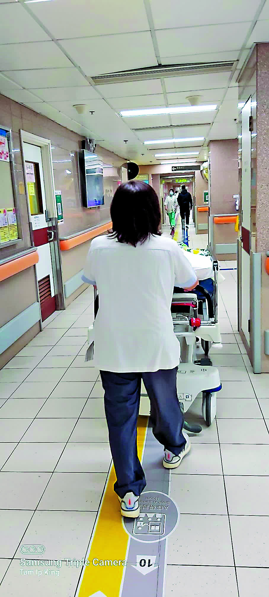(大公報 記者 邵穎)公立醫院最基層的支援及護理職系人員(護工)長期人手不足,工資低、工作量超負荷問題一直未解決,早前有工會調查,有約四成護工考慮辭職。《大公報》近日走訪醫院直擊護工苦況,有女助理員表示,入行超過二十年,月薪僅15000元,每天光是推病床已要走逾萬步,每名同事平均要應付六十個病人,身體積勞成傷,多處勞損;亦有負責病人清潔的服務助理透露,面對海量工作,要練成「摩打手」,一組五名助理,限兩小時內要為19至20名病人沖涼,平均每六分鐘洗一人。