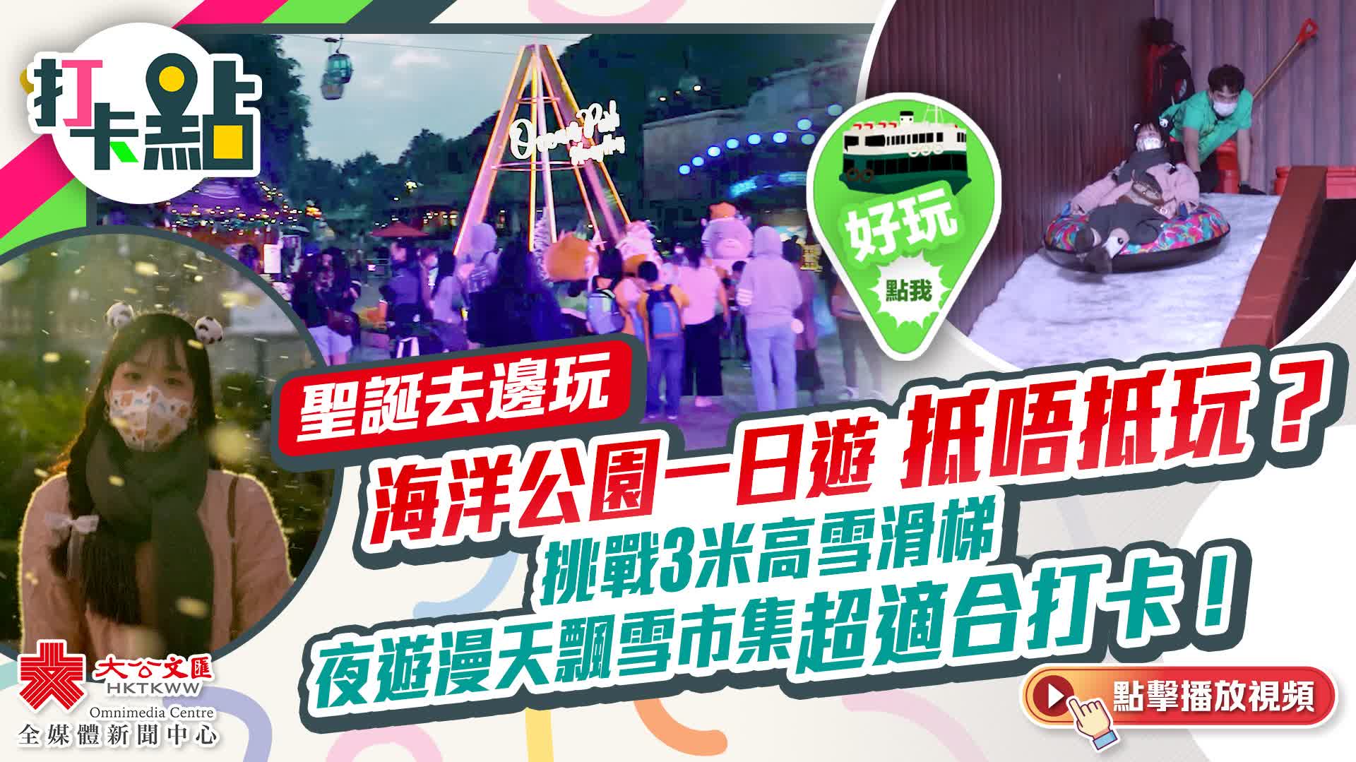大公文匯全媒體報道,上集打卡點我們體驗了迪士尼的聖誕活動,這集打卡點就由Janey帶你去海洋公園來個聖誕OP遊!海洋公園今年化身成為北歐風的芬蘭童話小鎮,新增3大主題活動:可以拿小禮物、和巨型啤啤熊打卡的「好『芬』聖誕小鎮」;可以打雪仗、挑戰3米高雪滑梯的「冬雪世界」,以及雪花飄飄、適合夜遊打卡的「歐陸聖誕市集」。3種不同體驗,男女老幼都可以一起來感受北歐冬日的非凡魅力!