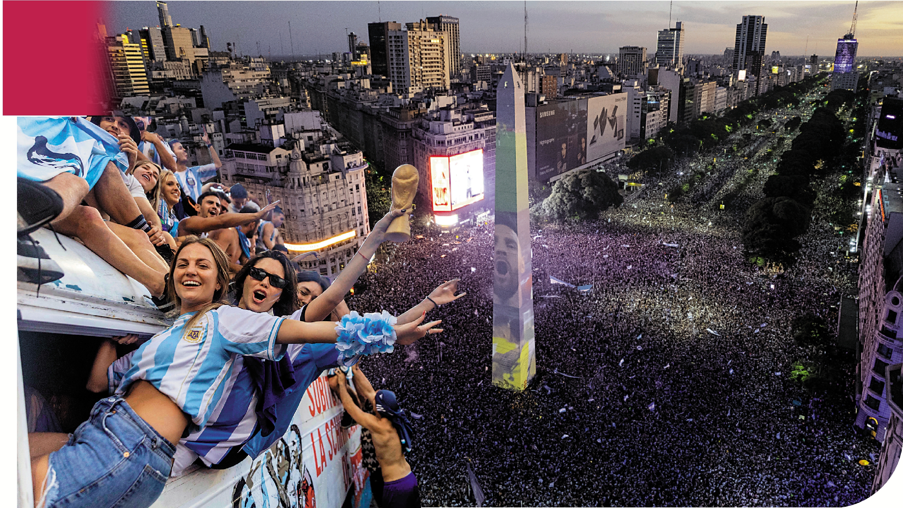 當地時間18日下午,約有200萬身穿藍白隊服的阿根廷民眾,擠爆首都布宜諾斯艾利斯市中心,瘋狂慶祝國家隊時隔36年再次獲得世界盃冠軍。彭博社稱,阿根廷人36年來第一次能夠暫時找到一個逃避的出口,遠離日常生活的痛苦。