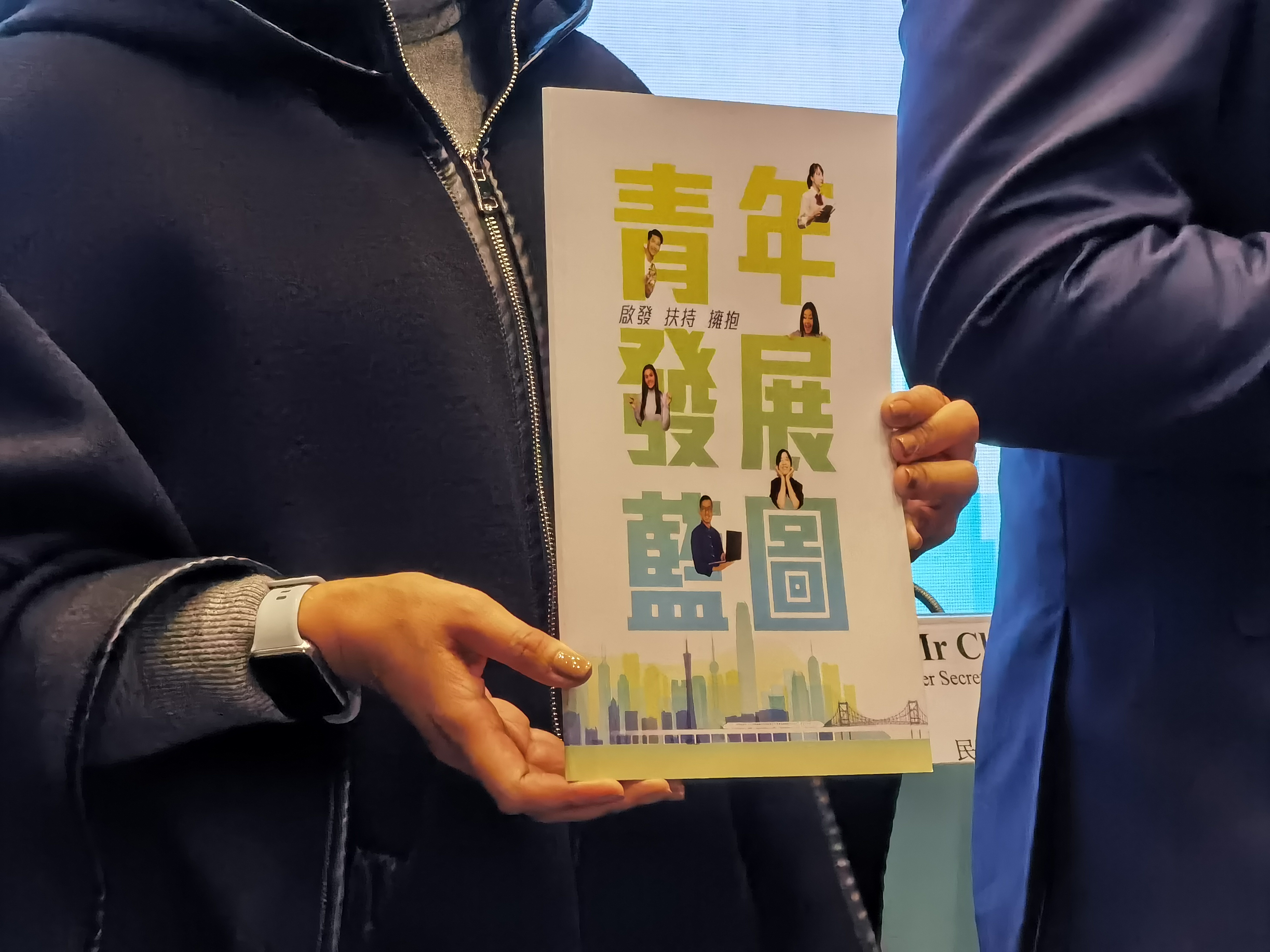 民政及青年事務局局長麥美娟指出,藍圖審視青年面對的挑戰,如國民身份認同、認識國家發展大局及世界、向上流動、壓力和精神健康、參與公共事務、不同群族青年的需要等。