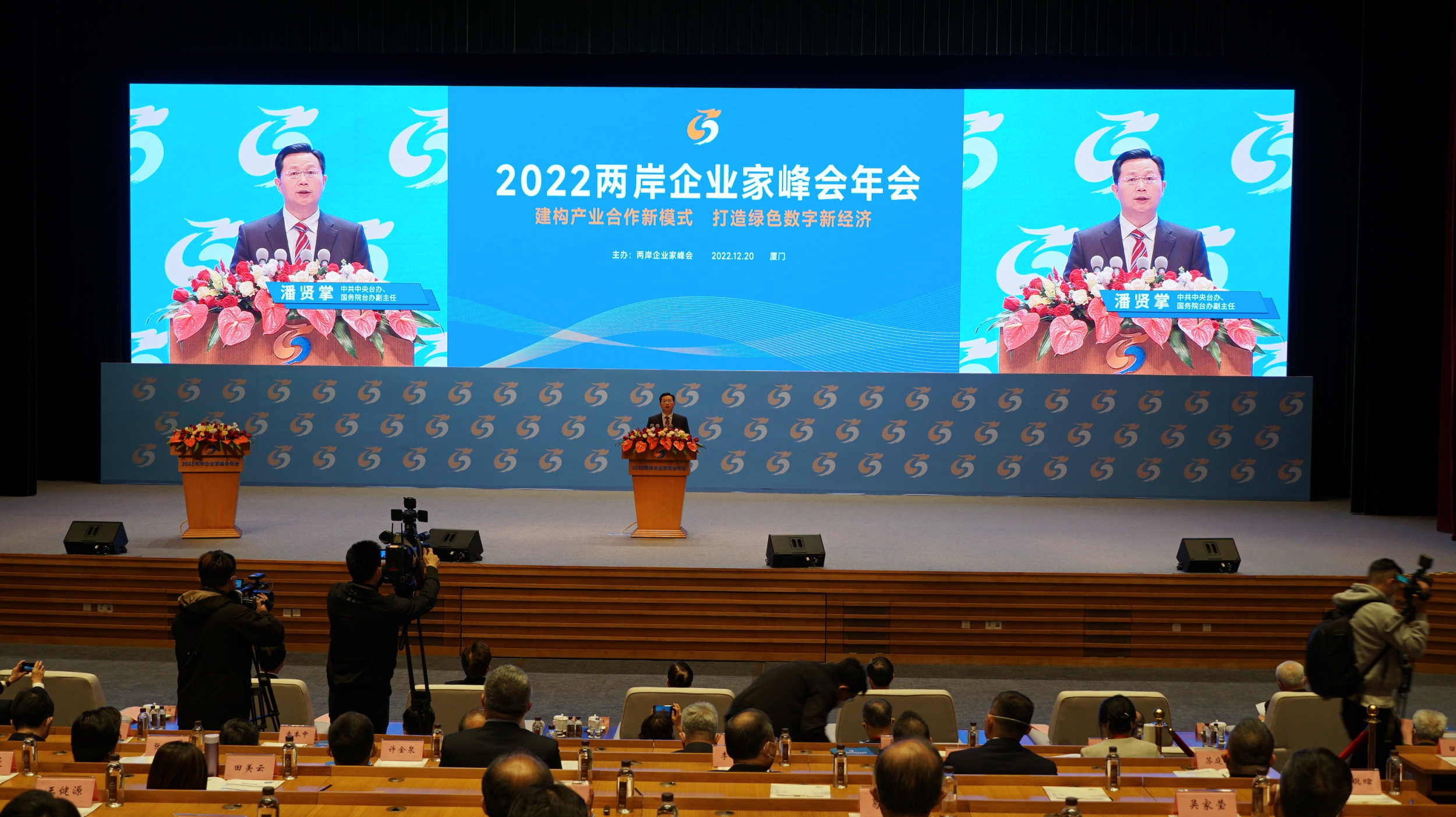 (大公文匯網記者 蔣煌基)2022兩岸企業家峰會年會,20日在福建廈門開幕。國台辦副主任潘賢掌在開幕式致辭中稱,大陸將全面推進中國式現代化,為兩岸經濟合作,特別是台胞台企到大陸發展提供巨大發展空間和巨大的幹事創業舞台。「如果您抓住了二十大前大陸30多年的快速發展機遇,那今後30年更要繼續緊緊抓住。」潘賢掌語重心長地說,「如果您沒有抓住前30年的發展機遇,那您千萬不要錯過今後30年的發展,因為二十大後的30年,祖國大陸的發展空間將更加巨大,發展更加高質量,發展更加精彩。」