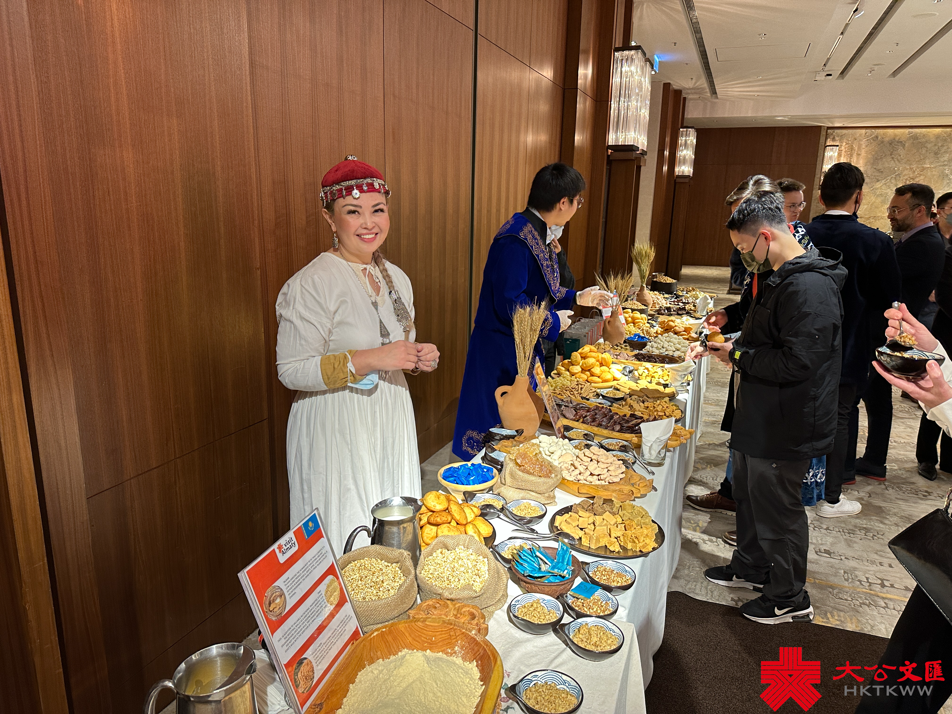 路演活動中的哈薩克美食展台最受來賓歡迎。民族志學家A.Musagazhinova女士展示了如何烹製哈薩克民族菜餚和哈薩克茶道,並帶領現場嘉賓品嘗Bylamyk粥、kurt、zhent、kazy、saumal等哈薩克斯坦傳統美食。