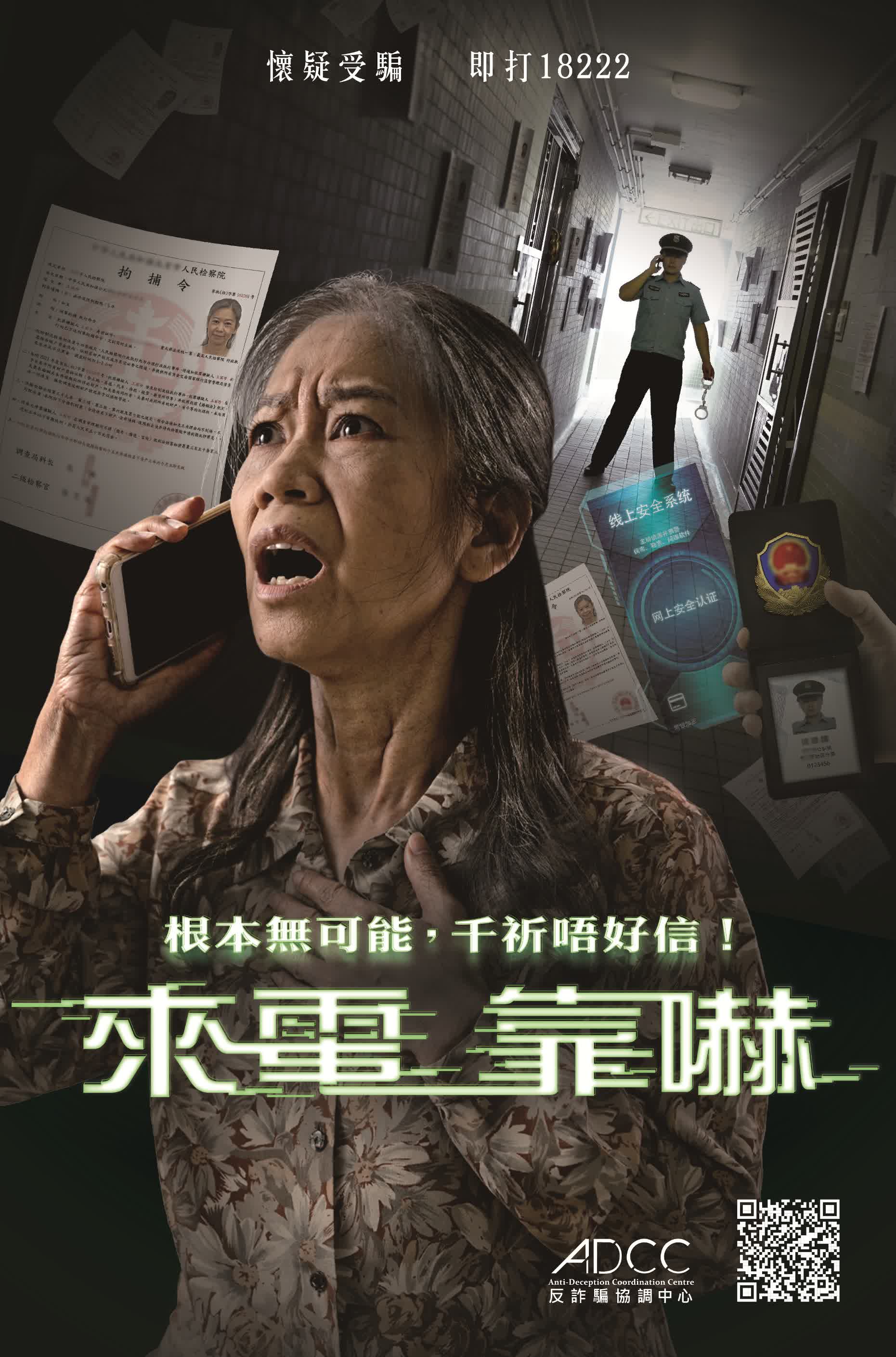 請冷靜!其實「假執法人員」、「假案件調查」、「假拘捕令」、「假程式」都只是騙徒令你深陷恐懼的伎俩,千萬不要相信!否則你的下場會如以上片段主角一樣,「接一個騙徒電話,輸掉全副身家」!