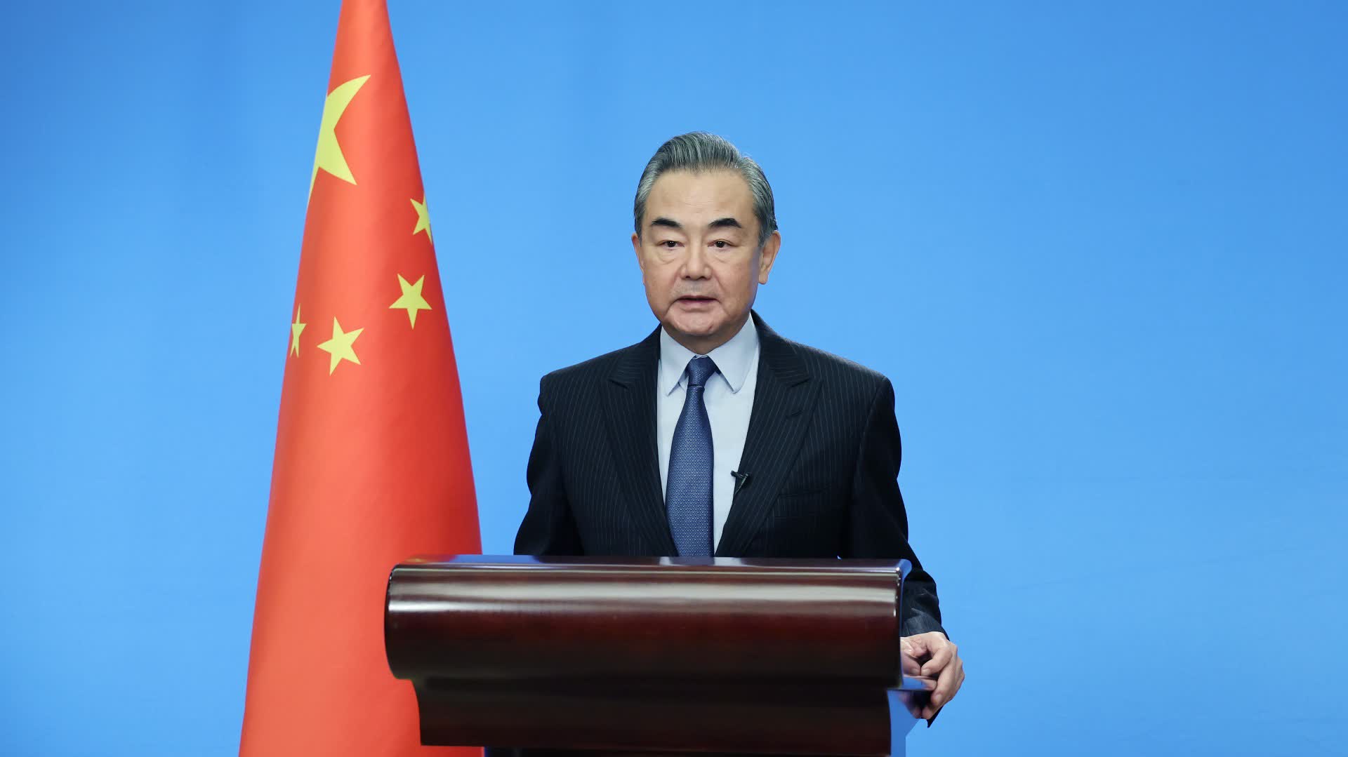 中共中央政治局委員、國務委員兼外長王毅今日(25日)以視頻形式出席2022年國際形勢與中國外交研討會並發表演講。