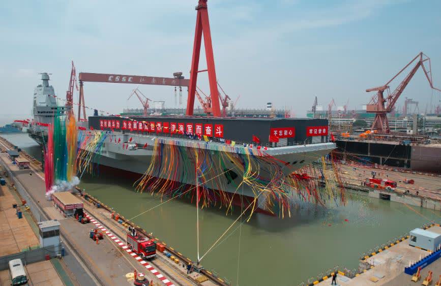 2022年6月17日,我國第三艘航空母艦「福建艦」正式下水,標誌着中國的重大軍事進步。作為我國完全自主設計建造的首艘彈射型航空母艦,「福建艦」採用平直通長飛行甲板,配置電磁彈射和阻攔裝置,滿載排水量8萬餘噸。