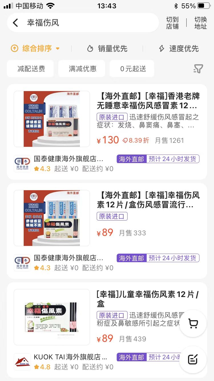 有內地網民先行一步,未及開關先從網上訂購。有網民從網上訂購幸福傷風素寄回內地,驚覺價格翻番。成人5盒、兒童3盒用量預估到手價1287元人民幣(約1440元港幣),從香港發貨至內地需7至10日。