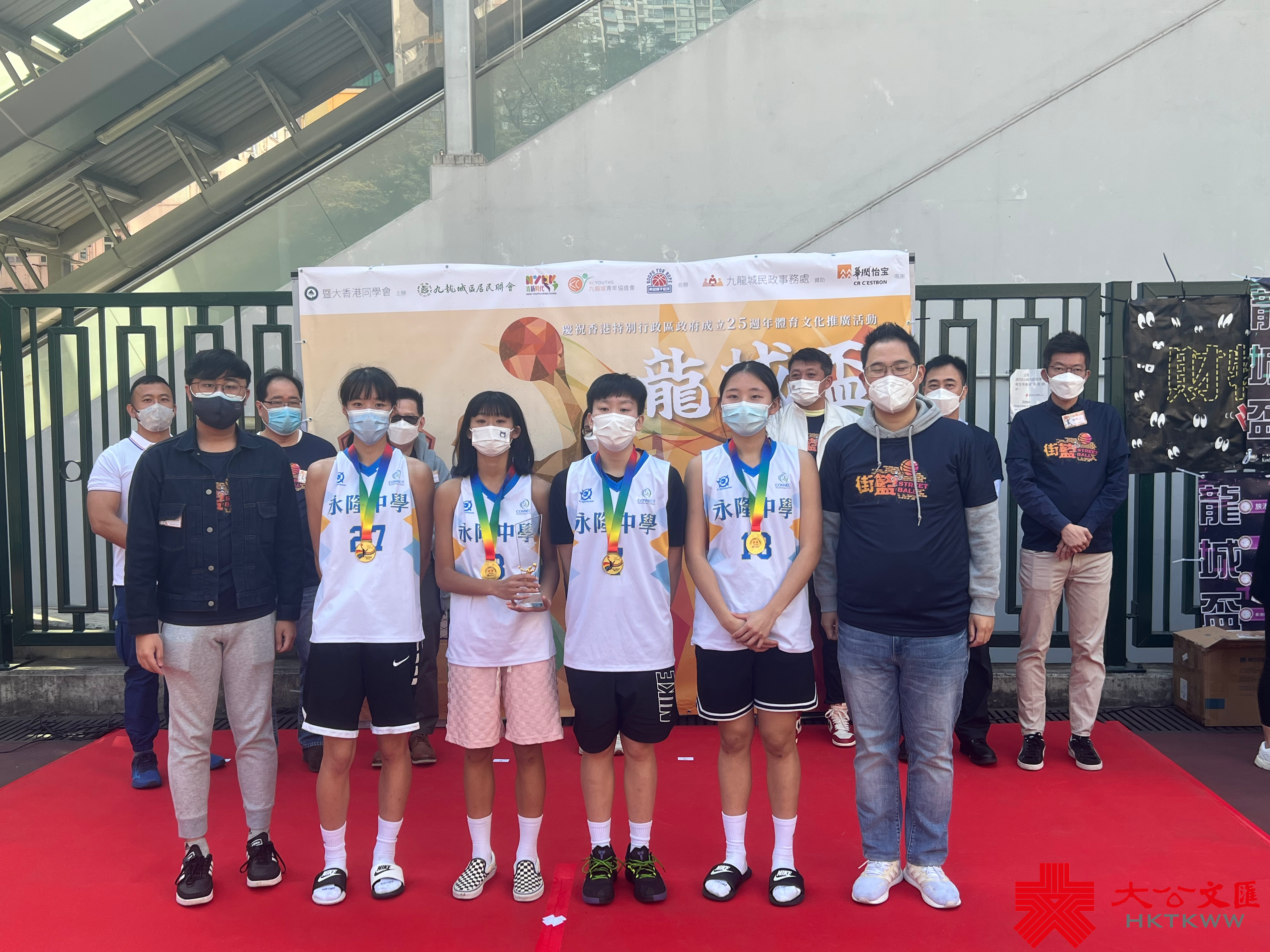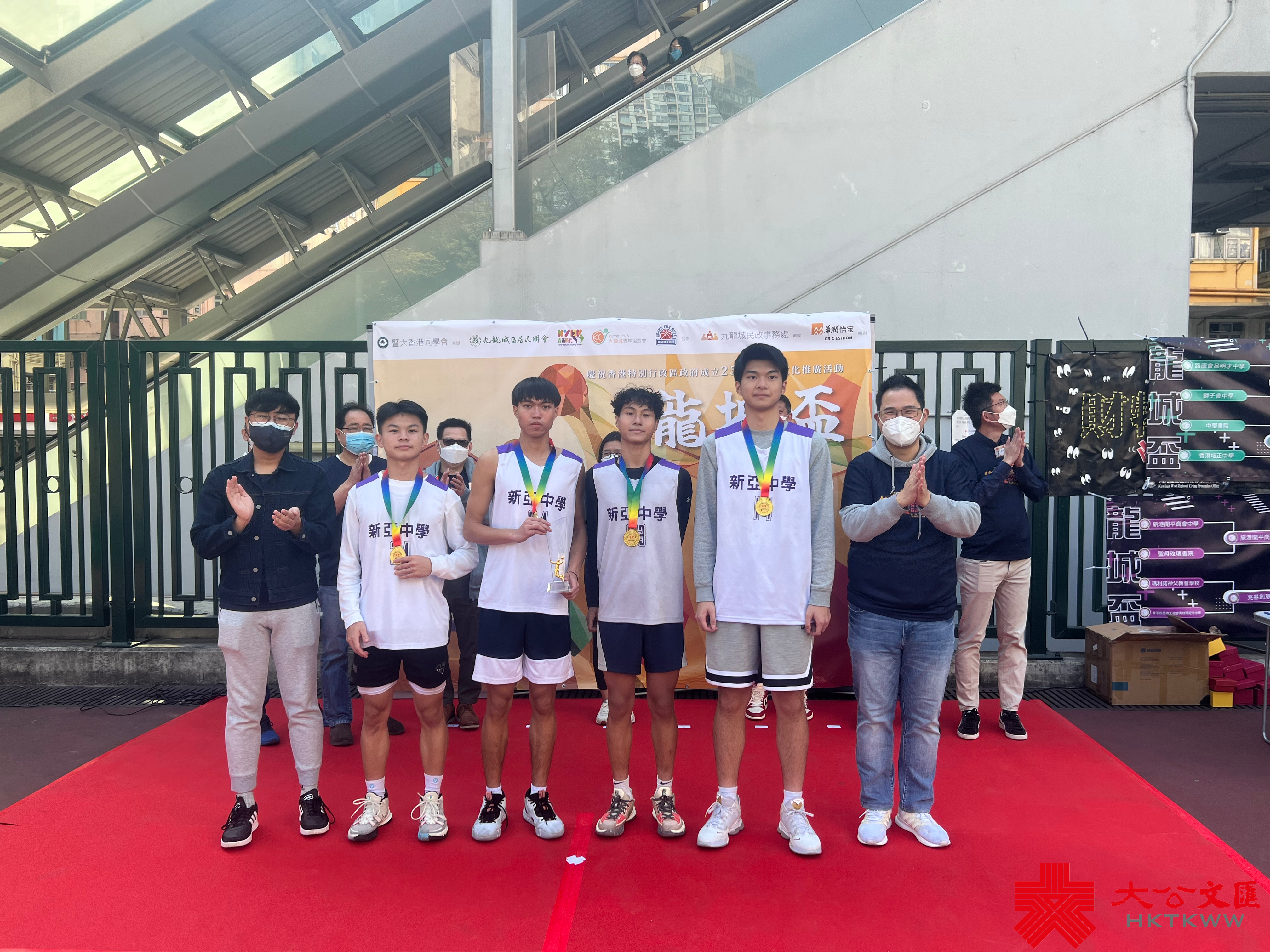 (大公文匯全媒體 記者 周傾芫)由暨大香港同學會主辦,九龍城區居民聯會、青新時代、希望種子籃球、九龍城青年協進會、九龍城民政事務處合作舉辦的「龍城盃」街籃爭霸賽,今日(27日)在何文田蕪湖街臨時遊樂場舉行。立法會議員楊永杰、暨大香港同學會主席馮務君、九龍城民政事務助理專員陳子豐、九龍城區居民聯會首席會長鍾子權、九龍城青年協進會主席陳欣耀、希望種子籃球亞洲教練梁國成等出席總決賽並擔任頒獎嘉賓。