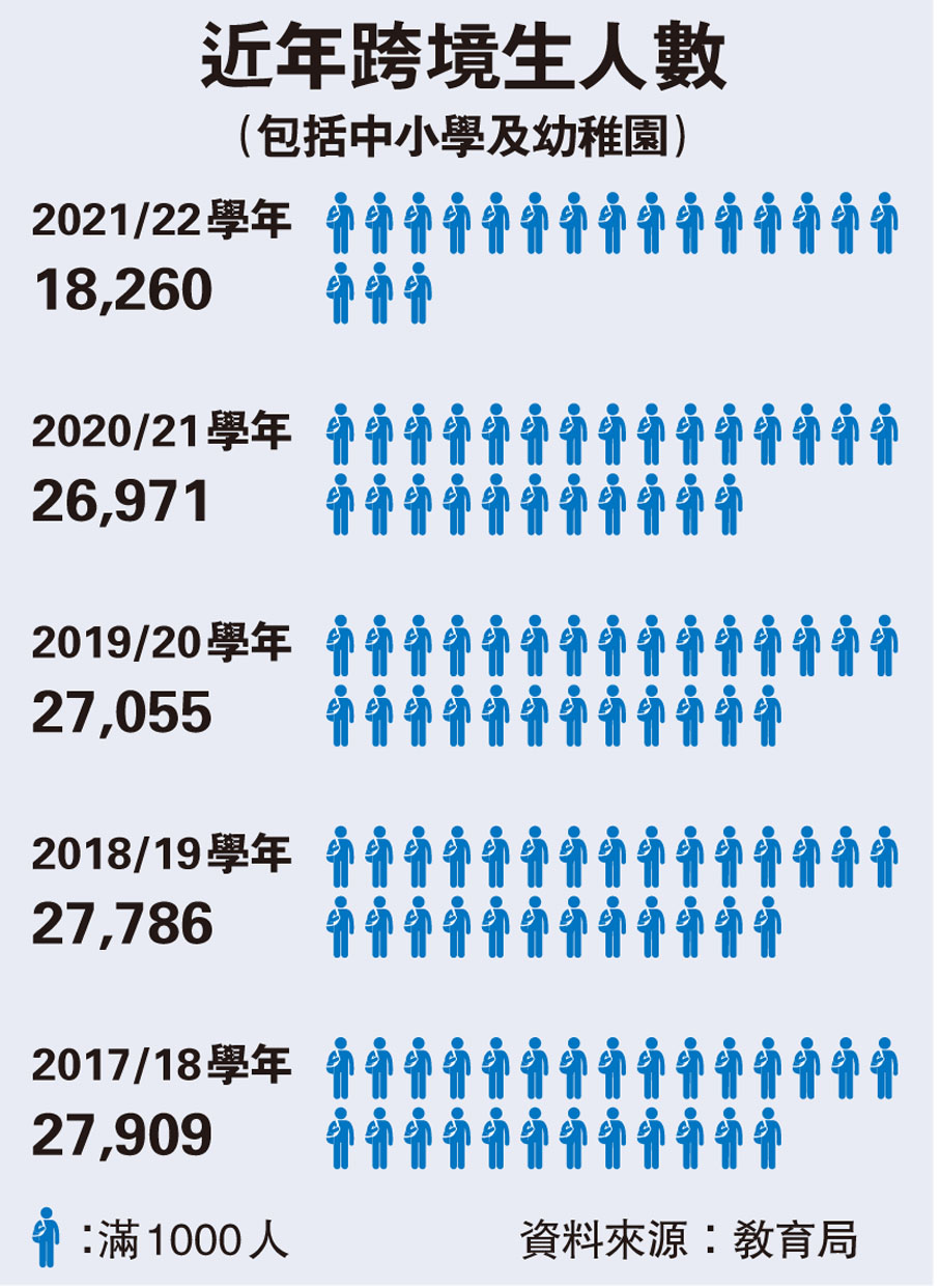 特區政府教育局的數據顯示,2019/20學年跨境生人數共有27,055人,至2021/22學年就讀本港學校但居於內地的學生人數則有18,260人(見表)。教育局表示,部分跨境學生已從內地回港及暫居於香港親友家中,以便回校參與面授課堂,亦有部分以往在上課日在港居住的學生,已返回內地居住,透過包括電子學習在內的不同學習模式在家中持續學習。這令人不禁探問,這一萬多「進退兩難」的跨境生中,有少多人好像李文康那樣,因專注力不足或其他原因而導致學習成績倒退,甚至也衍生出其他問題?這些學生在恢復跨境上學後,該如何「追進度」?