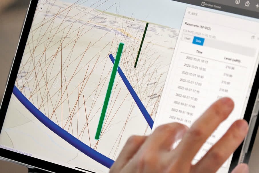 他提到,寶珊排水隧道本身設有172支排水斜管,當中有壓力計及儀錶持續量度水壓。在此系統下,工程人員可隨時了解局部位置的水位變化,「系統可以讓人員揀選特定的孔隙水壓計、排水斜管壓力計了解狀況,並可與過往數據作出比較,有助了解更多,及時發現異常情況。」