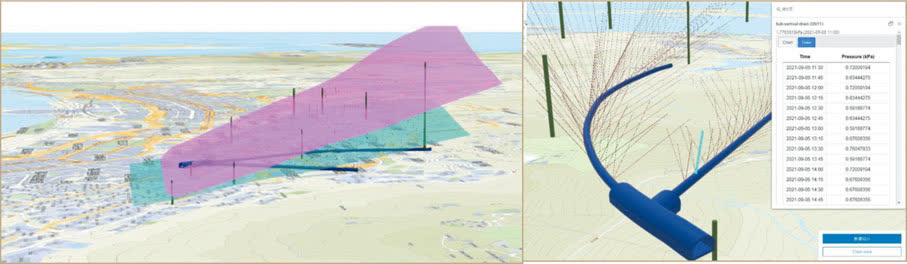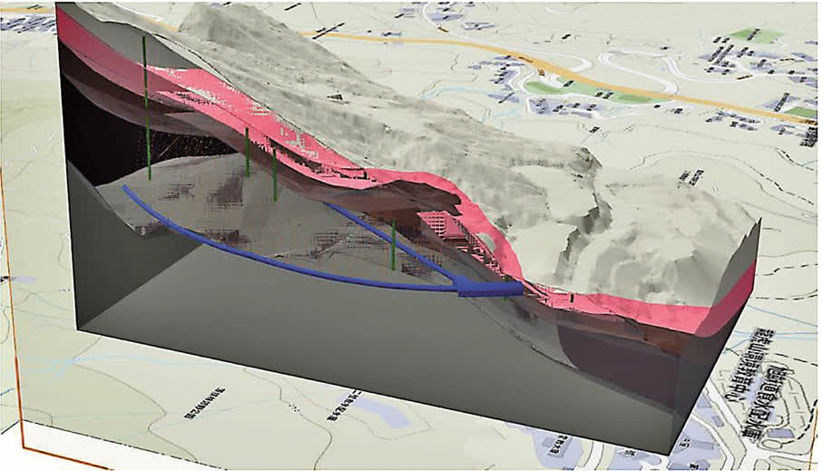 ◆該系統包括兩條排水隧道(直徑為3.5米,總長度為500米)和172條排水斜管,並配有自動實時地下水監測系統,以便土力工程處調控地下水位。