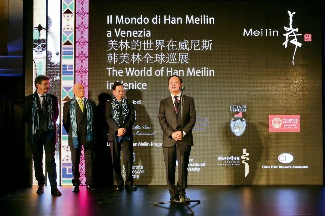 在中國國家博物館「韓美林八十大展」開幕前夕,2016年10月27日,「美林的世界在威尼斯·韓美林全球巡展」在歷史文化名城意大利威尼斯成功舉行,展期四個月。該展覽吸引了來自世界各地的眾多藝術愛好者,重量級嘉賓,如時任聯合國教科文組織總幹事伊琳娜·博科娃、意大利後現代設計之父亞歷山大·門迪尼以及法國盧浮宮博物館、美術館的代表和收藏家團體。不同膚色的人們紛紛前來觀摩與交流,可謂近年來「中國文化走出去」的成功案例。