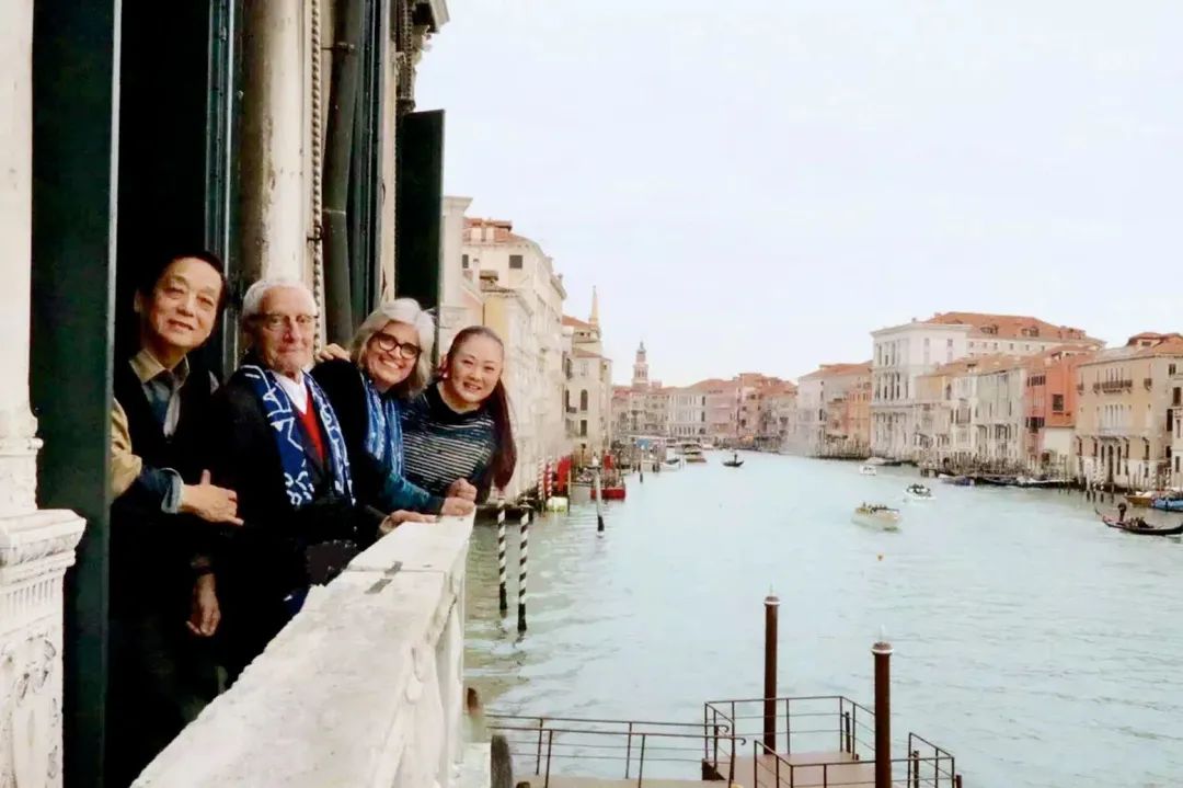 由於展覽周期比較長,為便於工作與生活,我們在威尼斯租賃了幾個公寓,作為我們和員工們的歇息之地。威尼斯是座水城,令人垂涎的是幾乎家家有碼頭,我們幾乎天天在自家門口坐着快艇去超市和海鮮市場買菜。望着幸福地吃着韓家菜的門迪尼,美林對他說:「也許上輩子我們是一對要好兄弟,上帝看我們太好了,就讓我們這輩子分開,一個在意大利,一個在中國,等到耄耋之年才見面。更也許,上輩子我們是情人。」當翻譯將韓美林的話轉述給門迪尼時,門迪尼哈哈大笑,說:「這輩子做情人也不晚!」沒想到,那次見面竟成永別!至今那天在夕陽下,門迪尼在伯爵府碼頭坐上快艇、用手向我們做着「比心」的情景仍歷歷在目。