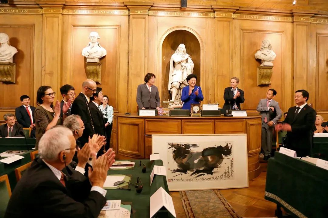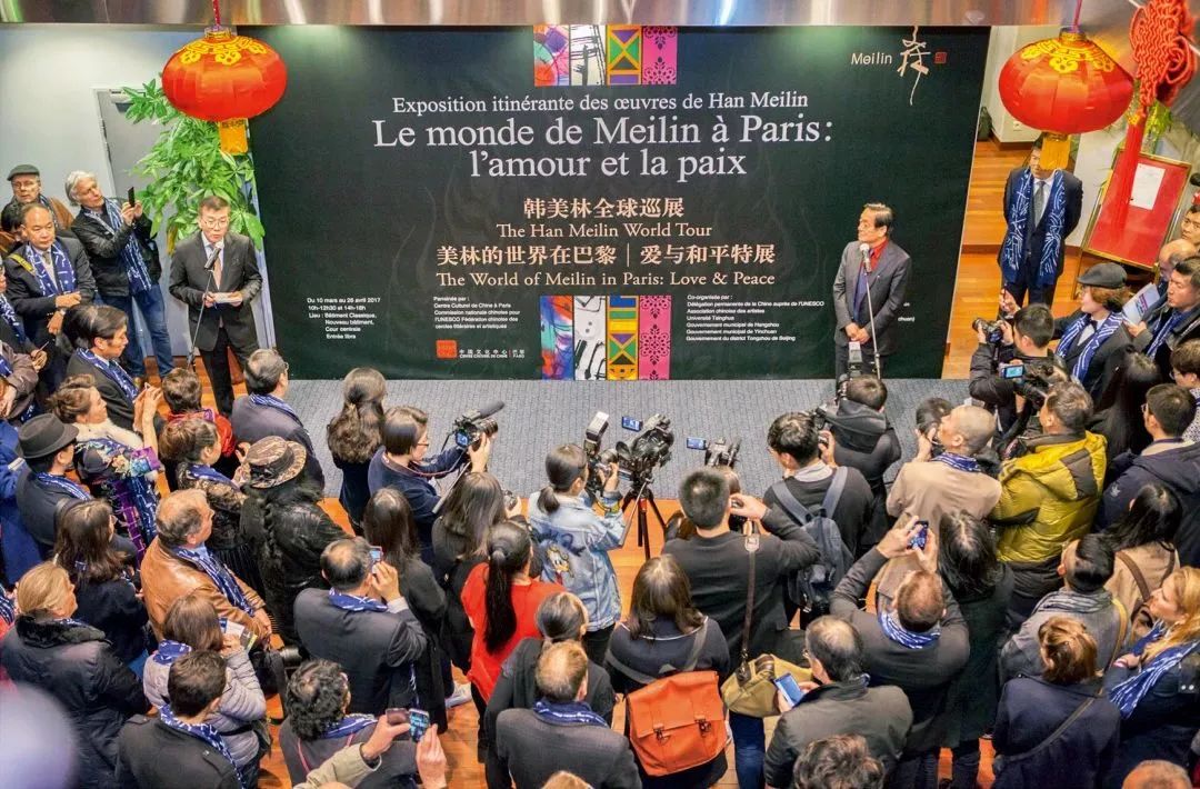 中國文化走出去的成果,在美林巴黎巡展上得到了印證。「美林的世界在巴黎·愛與和平特展」在巴黎聯合國教科文組織和巴黎中國文化中心展出的四十八天裏,各國常駐聯合國教科文組織代表團大使、法國文化部、法蘭西藝術學院、巴黎美院、法國藝術家協會、大皇宮、小皇宮、奧賽博物館、蓬皮杜藝術中心、橘園博物館、德拉克洛瓦國立博物館、吉美國立亞洲藝術博物館等著名藝術機構的館長及其代表,先後參觀了展覽,盛讚韓美林藝術,盛讚中華文化。巴黎七區區長看了展覽留言道:「韓美林先生對各個藝術領域的敏感性、優雅度與創造力,賦予了他這些偉大的作品一種可以為世人所接受的普世性與整體感。他的才華是多麼讓人震撼啊!」