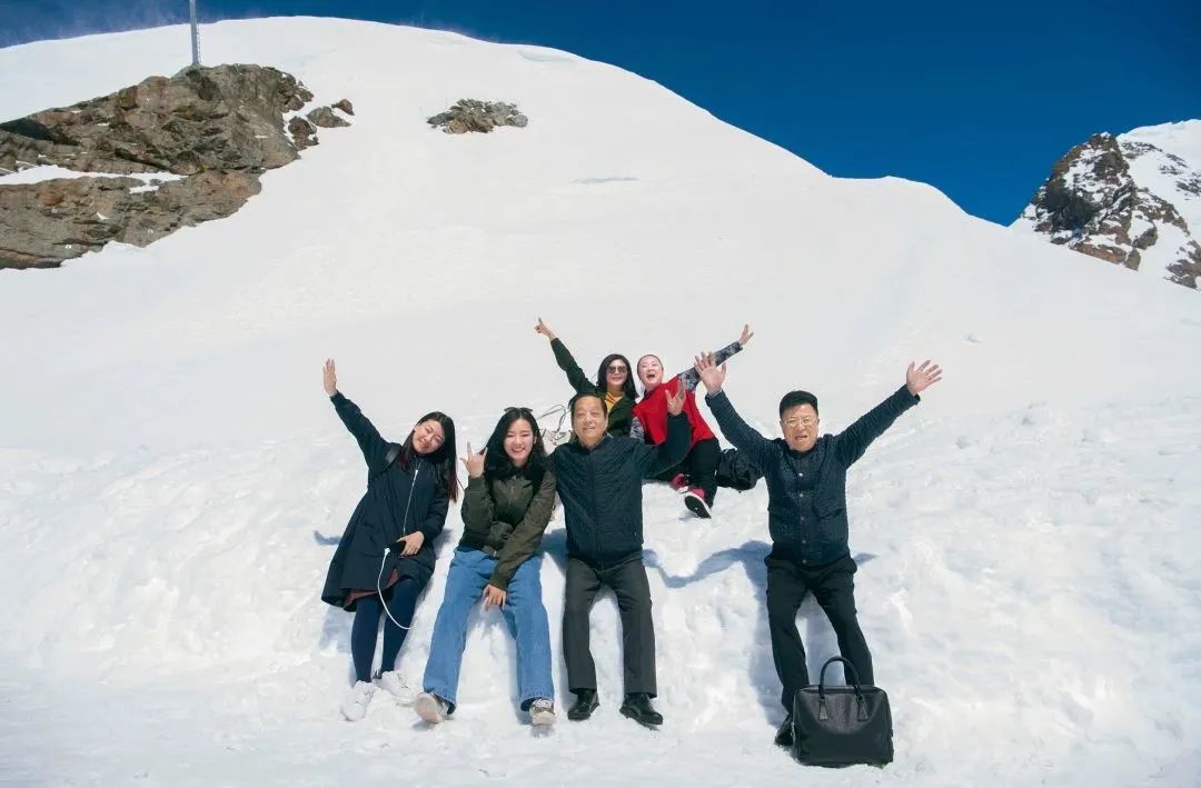 從洛桑到因特拉肯,是我人生中走過的最美的一段路,生命起源的三要素——空氣、陽光和水,在這裏均是極品。當登上位於瑞士因特拉肯小鎮的億萬年永凍層少女峰(世界上最長的冰川),滿目的藍天白雪,讓你感到世界竟是如此純凈,蒼穹也只有一步之遙。在少女峰,我們的員工給他們的家人送上了祝福,美林與我也激動地給剛滿百天的小兒子天予送上了祝福!