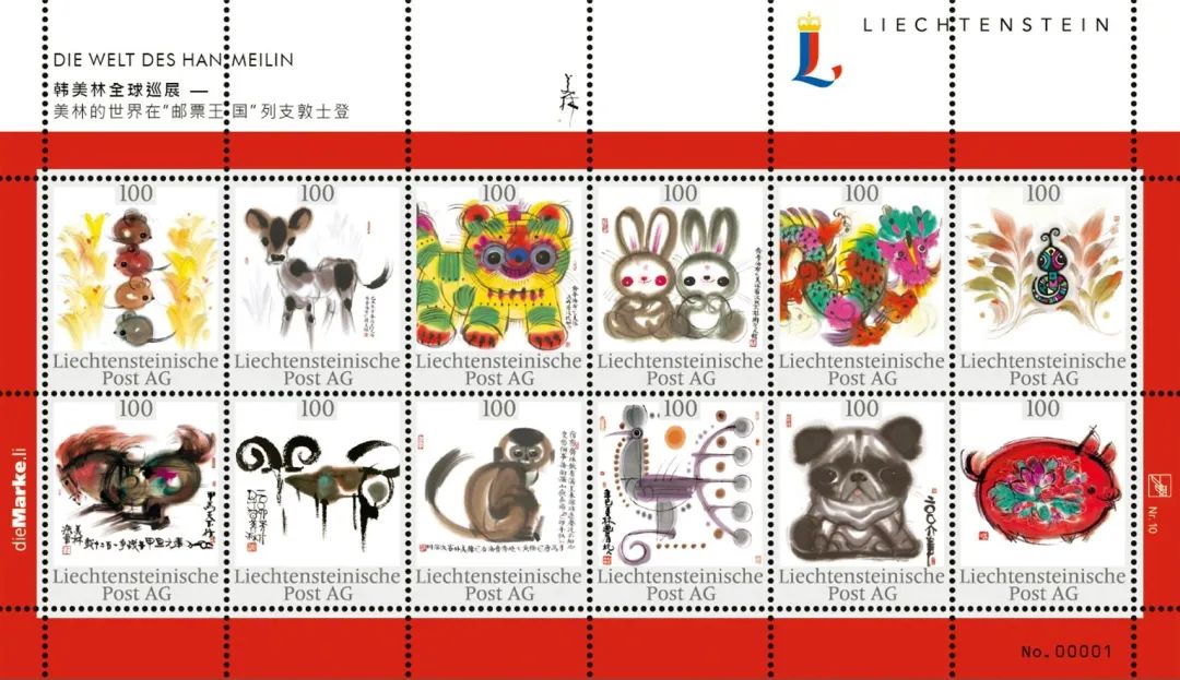 列支敦士登國家博物館館長雷諾是我們的好友,他經常來北京,與美林結下了深厚友誼。雷諾館長表示,列支敦士登國家博物館能迎來像韓美林先生這樣偉大的藝術家的作品,是一種緣分。中國駐蘇黎世兼駐列支敦士登公國總領事趙清華也特意從瑞士蘇黎世趕來參加開幕式,並對列支敦士登國家博物館為推廣中國文化藝術做出的貢獻表示感謝。為了紀念「韓美林全球巡展」來到列支敦士登,列支敦士登郵政總公司發行了一版珍藏版郵票。票面圖案取自韓美林精心創作的十二生肖作品。韓美林的生肖作品構思巧妙、造型誇張、色彩艷麗、生動活潑,廣受藝術愛好者喜歡。韓美林為中國郵政多次設計生肖郵票,他的生肖作品登上了世界「郵票王國」的方寸天地,從而成為中國與列支敦士登文化交流的一大盛事。