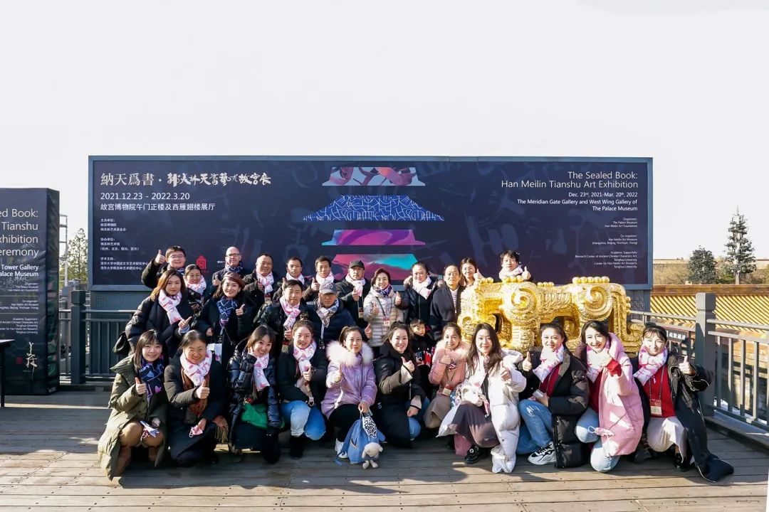 一年後,2021年12月22日,全世界新冠肺炎疫情還未停止,「納天為書——韓美林天書藝術故宮展」在故宮博物院午門正樓展廳如期開幕。王旭東院長在開幕式致辭中表示,故宮博物院、韓美林藝術基金會共同主辦「納天為書——韓美林天書藝術故宮展」,是傳統文化和當代藝術的一次碰撞與融合。故宮是中國古代勞動人民的智慧創造,是中華五千年文明的承載者,是中華優秀傳統文化的匯聚地。馮驥才發來祝賀視頻賀詞,他說,當韓美林這些當代作品懸掛在故宮古老而沉靜的宮室中,在海量的藝術寶藏之間,我們彷彿可以聽到一種無聲的對話。古老與現代的對話。在這對話中,我們能夠感受到一種美妙的根性的聯繫,一種長流不息的傳統,一種時代的更新,從而引起我們的深思。而一周前剛做了心血管支架手術的美林在致辭中慷慨陳詞:「天書」在我的藝術領域裏,是特殊的存在,對我的藝術和靈感是質的提升和改變。故宮是中華文化的一個最大的家。能夠兩次進故宮辦展覽,是我對民族文化的溫情敬意。