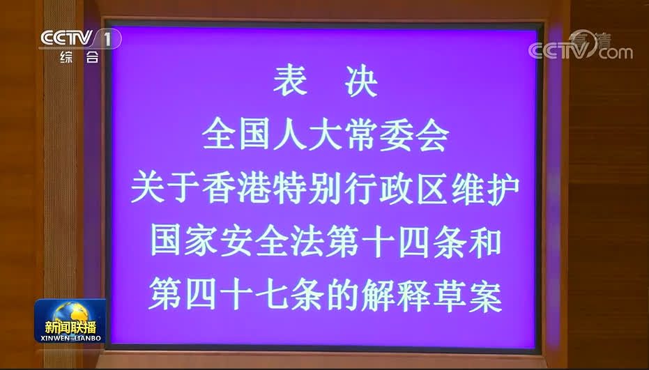根據我國憲法第六十七條第四項的規定,全國人大常委會有權解釋法律;香港國安法第六十五條明確規定,本法的解釋權屬於全國人大常委會。立法法第四十五條第二款對全國人大常委會解釋法律規定了兩種情形:一是法律的規定需要進一步明確具體含義的;二是法律制定後出現新的情況,需要明確適用法律依據的。本次全國人大常委會對香港國安法第十四條和第四十七條作出的解釋,共有一個導語段、三個條文,包括了立法法規定的上述兩種情形。