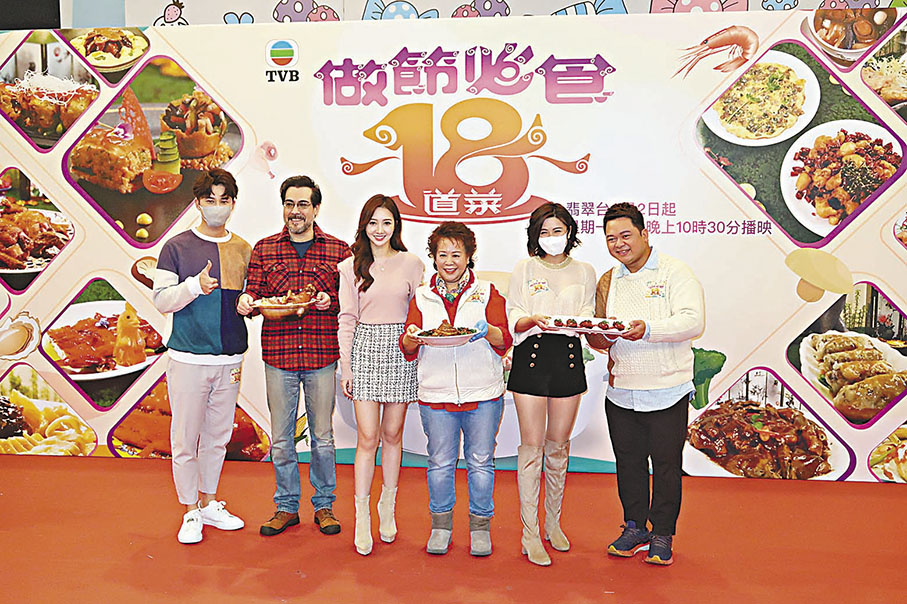 (香港文匯報記者 梁靜儀)何廣沛、何依婷和江嘉敏昨日到電視城出席綜藝節目《做節必食18道菜》記者會,三人並即席與星級廚師黃亞保、蕭秀香(三姐)和Jacques Kagi炮製賀年菜式,不過依婷全程只是負責遞咪及觀看,更自認廚藝差,經常嚷減肥的江嘉敏就笑言想找依婷幫手煮飯。何廣沛則笑稱拍該節目初時還以為有好嘢食,原來是食昆蟲,他坦言試一次就夠。