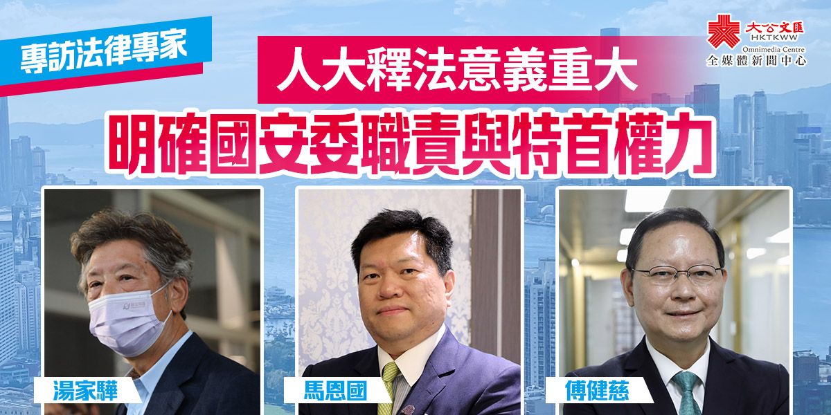 對此,大公文匯全媒體專訪法律界權威:行政會議成員、資深大律師湯家驊,香港法學交流基金會主席、大律師馬恩國,全國港澳研究會會員、香港法學交流基金會副主席、法學教授傅健慈,闡釋此次人大釋法對特首權力、國安委職責,以及香港的行政主導體制,具有怎樣的重大意義。