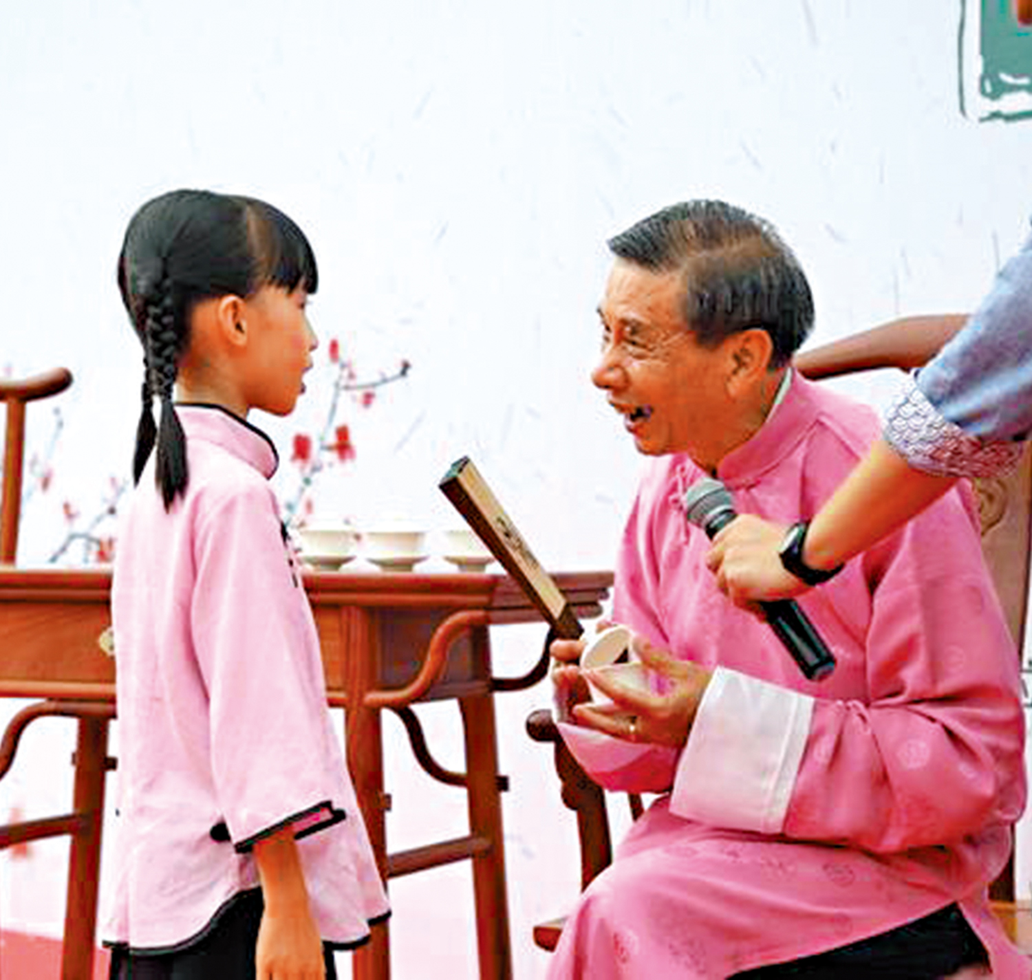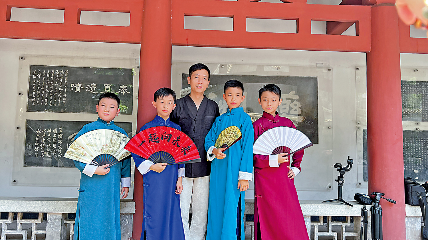 「很型!」11歲的周文曦一拍驚堂木,滿是嬰兒肥的圓臉就會變得很有氣勢,立刻引起同學們的側目;學習粵語講古已經踏入第九個年頭的鄒游曦,更是從「發口說工」到「醒目摺扇」,每一個講古技巧都爛熟於心,每次在台上表演都游刃有餘。