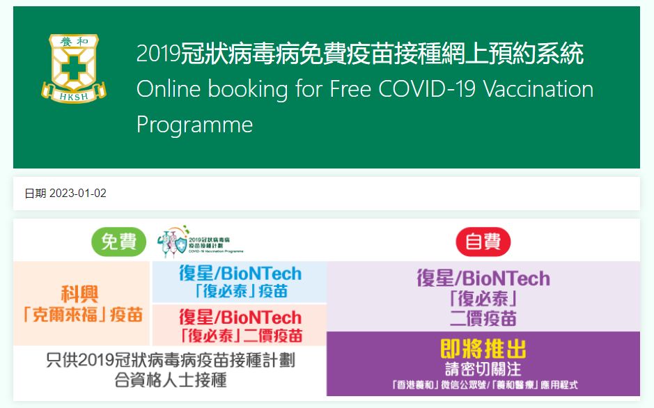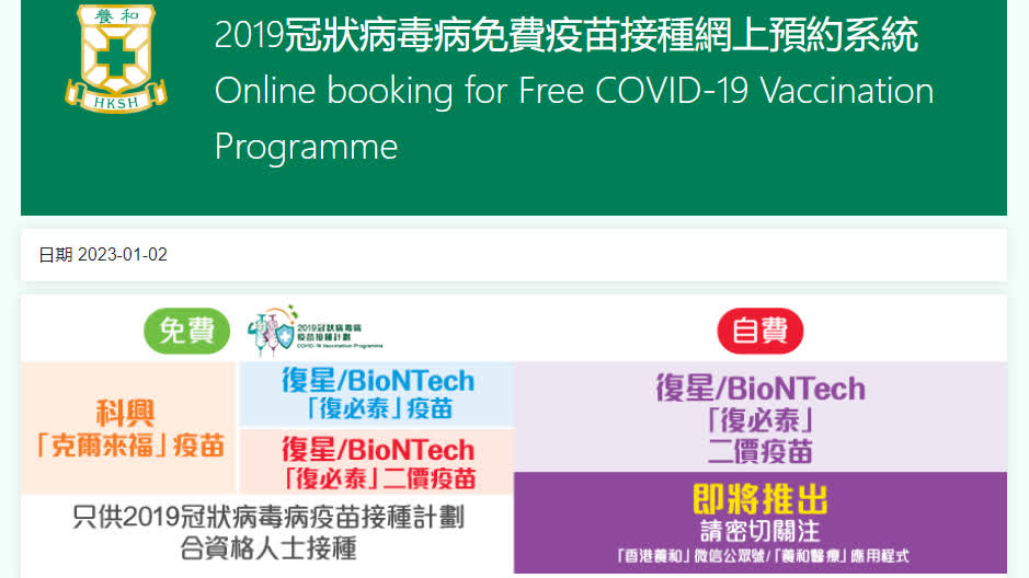 不過,網站未有提及打復必泰二價疫苗的價錢、何時開始提供服務等資料。