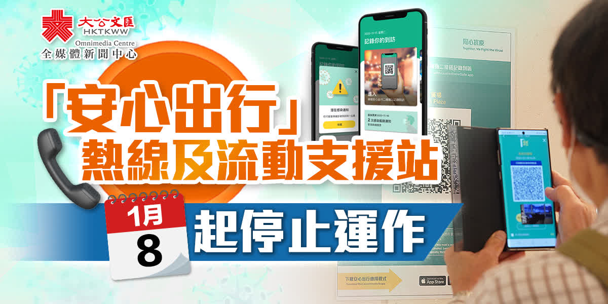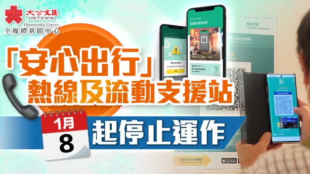 大公文匯全媒體報道,政府上月宣布,放寬社交距離措施,取消檢疫令以及「疫苗通行證」等安排。政府資訊科技總監辦公室(資科辦)今日(2日)宣布,隨着多項防疫抗疫措施陸續放寬,支援「疫苗通行證」的「安心出行」電話熱線(2626 3066)以及設於25個港鐵站的流動支援站將於1月8日停止運作。