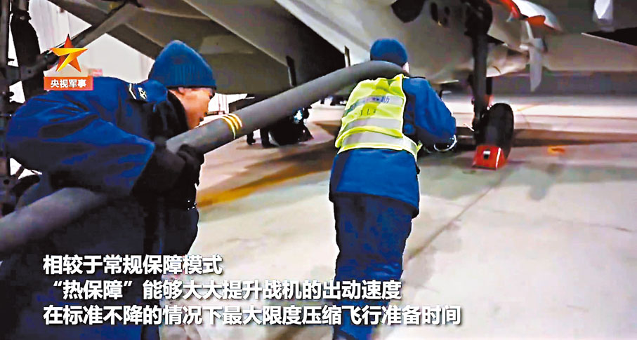 報道引述解放軍空軍某基地機務二中隊副中隊長張偉說,「熱保障」的推進和實施可以提高戰機的出動效率,在飛機發動機不停車的情況下進行再次出動準備。「時間緊,任務重,這個過程既要防止異物吸入發動機,也要避免發動機的熱氣流對人員和裝備造成傷害。」
