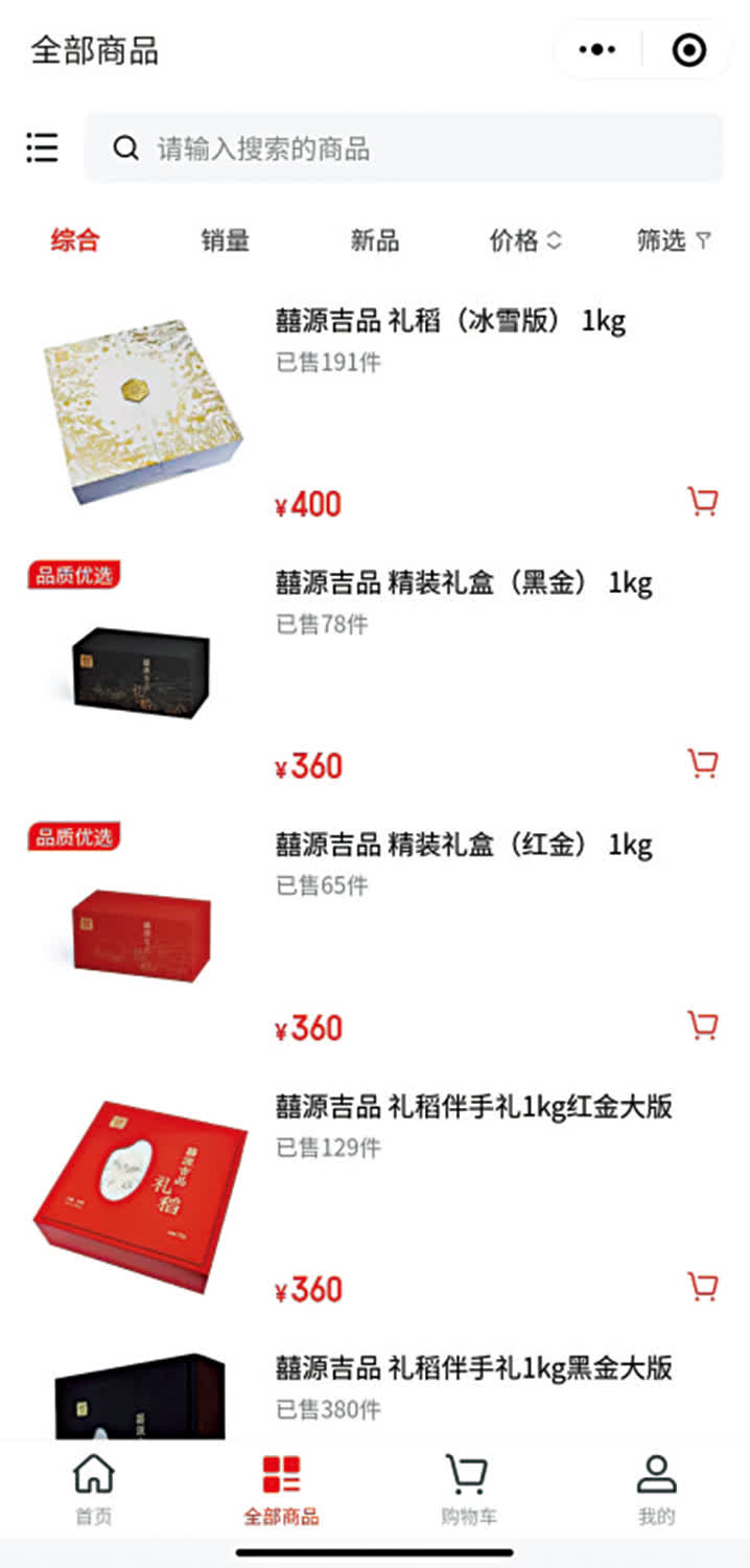 主打綠色有機品牌「囍源吉品」的大米在其小程序上,每斤可以賣到200元。「囍源吉品」創始人之一魯賀表示,「囍源吉品」選取稻米之鄉舒蘭作為水稻種植基地。其種植基地全程監控大米的生產過程,田間物聯網24小時監控。除此之外,「囍源吉品」還推出農場到家的模式,將農場的有機蔬菜與品質大米,以周為單位,從農場直送至客戶家中。在「囍源吉品」的小程序上顯示,農場到家服務收費每年為1.58萬元,共52次,每次包含有機蔬菜8斤、1公斤大米。