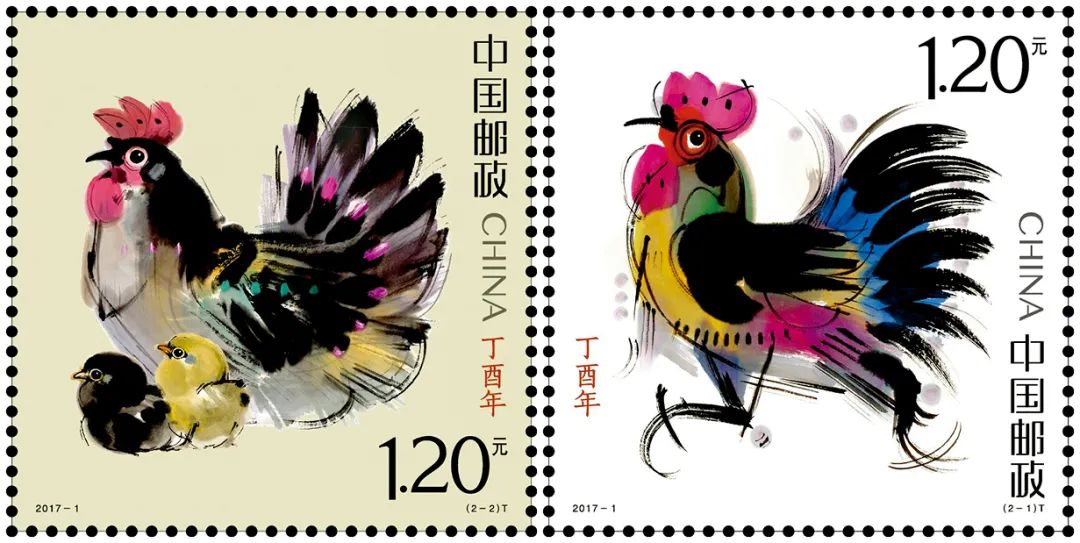 「小郵票,大世界」,生肖郵票設計史上歷來高手雲集,其中不乏國內頂尖畫家。2016年末,猴年未盡,中國郵政集團公司的領導就早早來到北京韓美林藝術館,為2017年丁酉雞年的生肖特種郵票特別邀請美林擔綱設計。美林不負眾望,歷時半年,深度構思,共創作了數十幅生肖雞形象。經過專家研討、廣泛聽取意見後,中國郵政最終選定了兩幅寫實與裝飾風格相結合的韓美林水墨雞畫作。