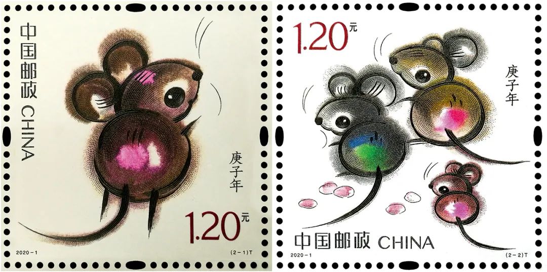 2020年1月5日,《庚子年》特種生肖郵票在中國國家博物館白玉廳舉行了首發儀式。在首發儀式上,中國郵政集團公司副總經理康寧介紹說:「《庚子年》特種郵票,延續了第四輪生肖郵票的『家國』概念,由韓美林先生擔綱設計。第一圖名為(子鼠開天),取自民間傳說『鼠咬天開』,萌動之鼠騰空躍起,咬破混沌,遂成宇宙,同時鼠的奮力跳躍,也寓意繼往開來的發展不斷邁上新台階;第二圖為(鼠兆豐年),三隻小鼠一副歡喜自得模樣,並綴以花生圖案一派豐收景象,寓意2020年五穀豐登、闔家歡樂。」