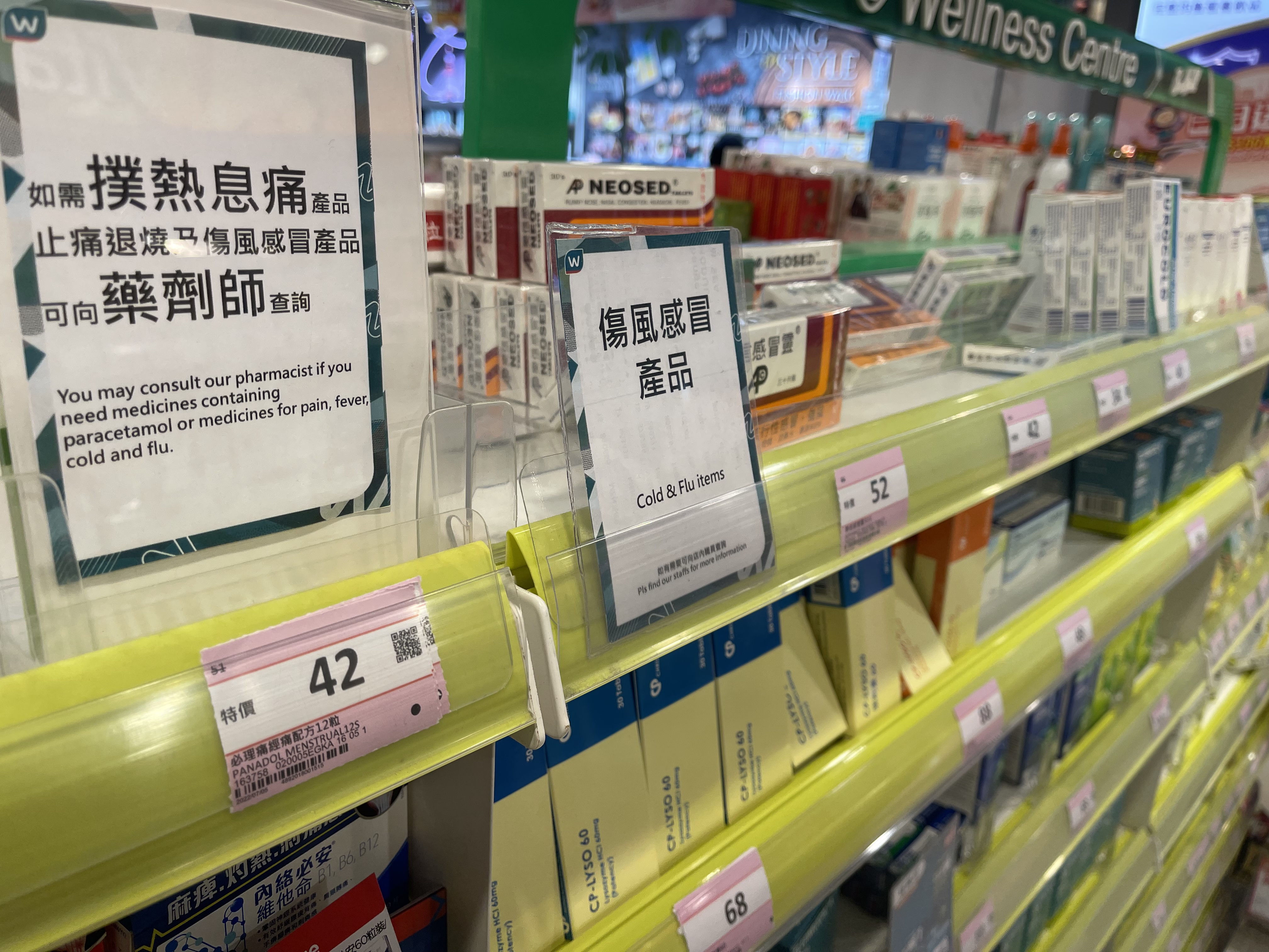據報道,同區的連鎖藥物及個人護理用品店內,多個放有不同牌子止痛退燒藥的貨架都被清空,店方規定每人限購兩盒撲熱息痛藥物。現場所見,職員補貨大約半小時後,藥物已接近被掃空狀態。