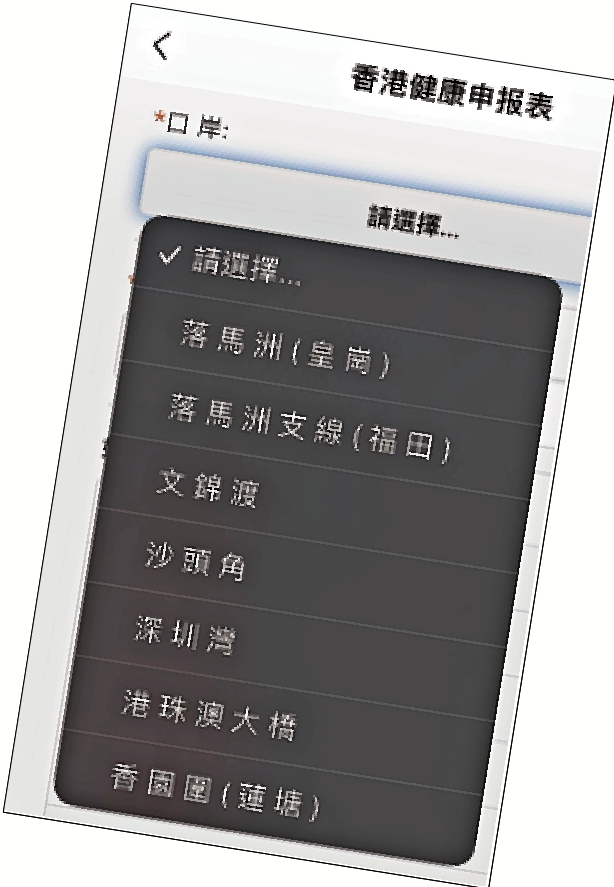 香港與內地通關的具體方案將於日內公布,大公報記者昨日發現,衞生署供抵港人士填寫的「健康及檢疫資訊申報」網頁,陸路入境口岸選項增至七個,除了現時已經開放的深圳灣、港珠澳大橋外,還包括落馬洲支線(福田)、文錦渡口岸,還有落馬洲(皇崗)口岸、沙頭角口岸、蓮塘/香園圍口岸,但高鐵、羅湖站口岸不在名單上。